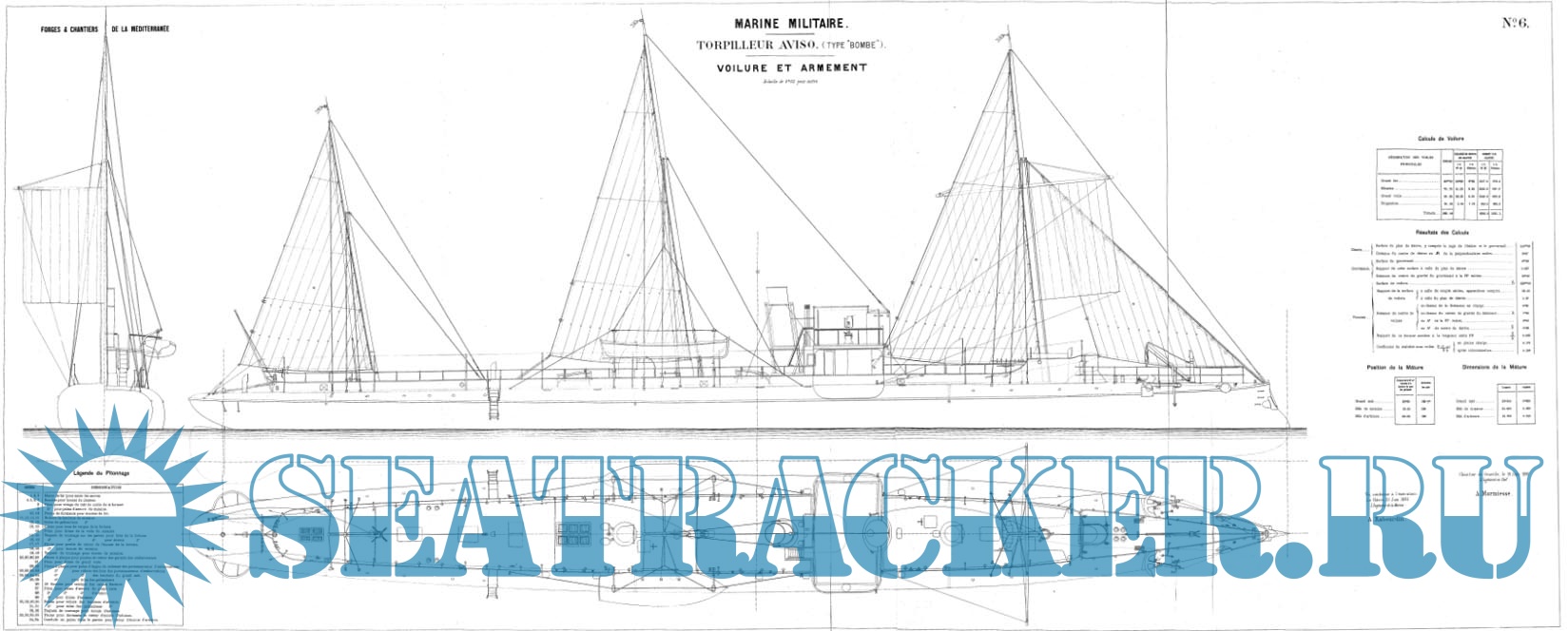 Архивные чертежи миноносца BOMBE 1885 год (Франция)