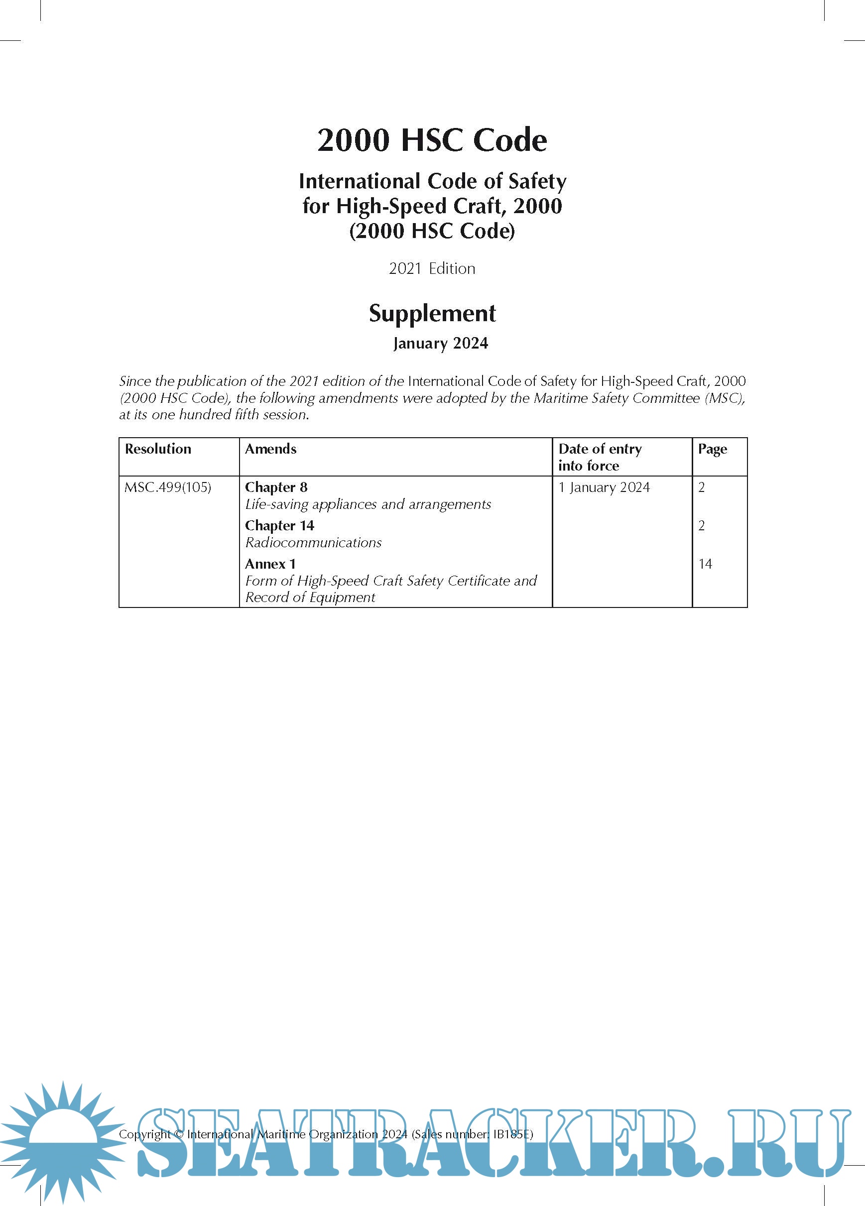 2000 HSC Code International Code of Safety for High-Speed Craft 2021 Edition - Supplement
