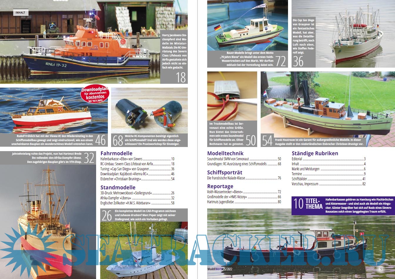 Year: 2022 Language: German Author: : Eric Schafenrort (Redaktor) Genre: Periodical (magazine) Edition: 2022-05 Format: PDF Quality: eBook Pages count: 86 Description: Das führende Fachmagazin für Schiffsmodellbauer. Egal ob Stand- oder Fahrmodell, ob kleines Segelboot oder gigantisches Kreuzfahrtschiff. Die Modellwerft informiert über Neuheiten, hilft mit Bautipps und fasziniert mit besonderen Reportagen.