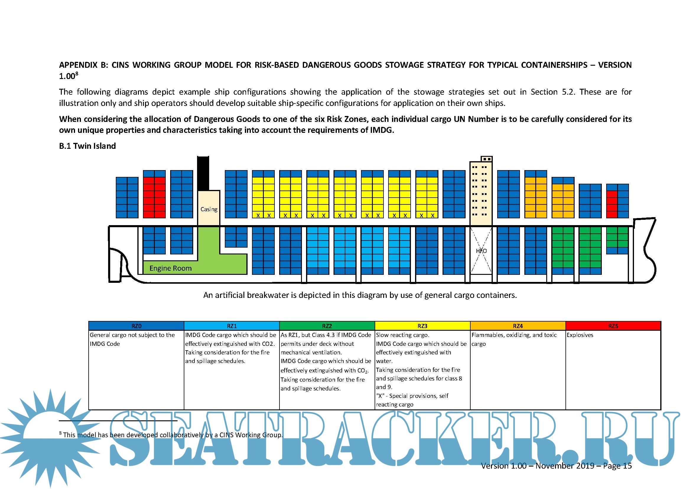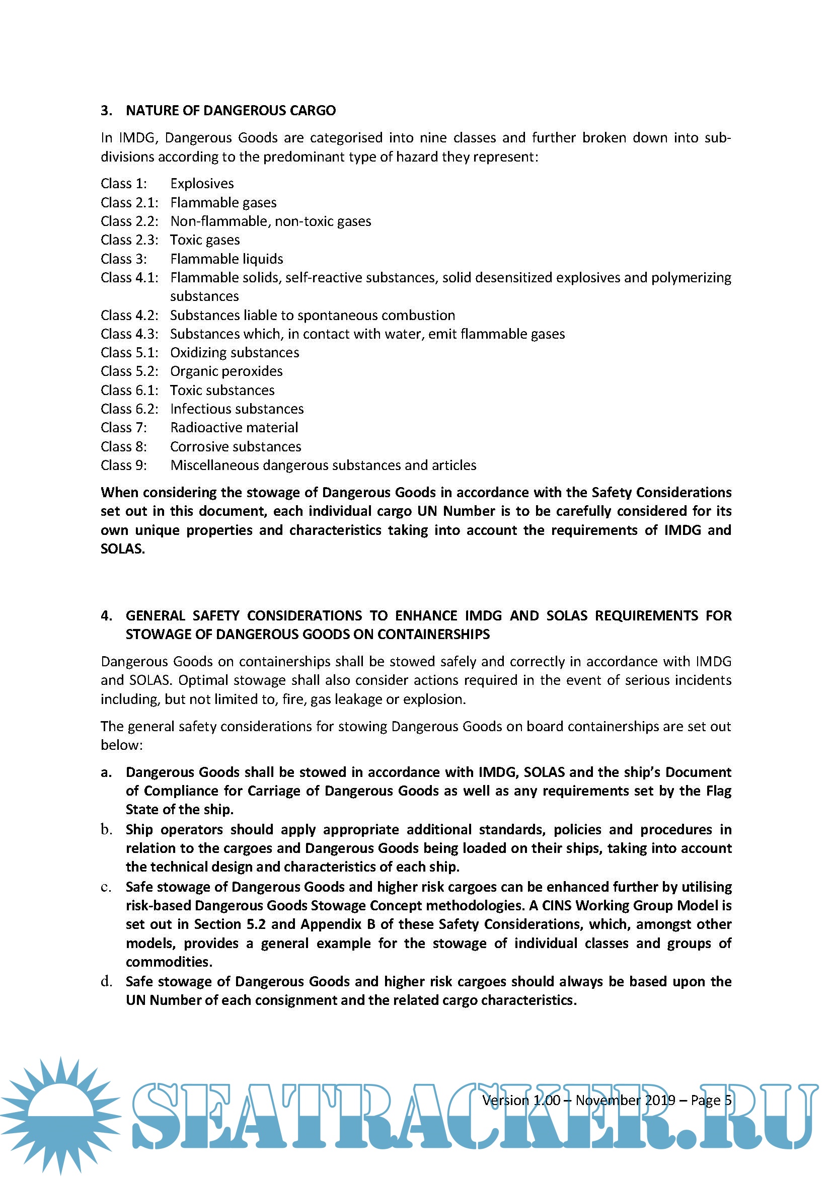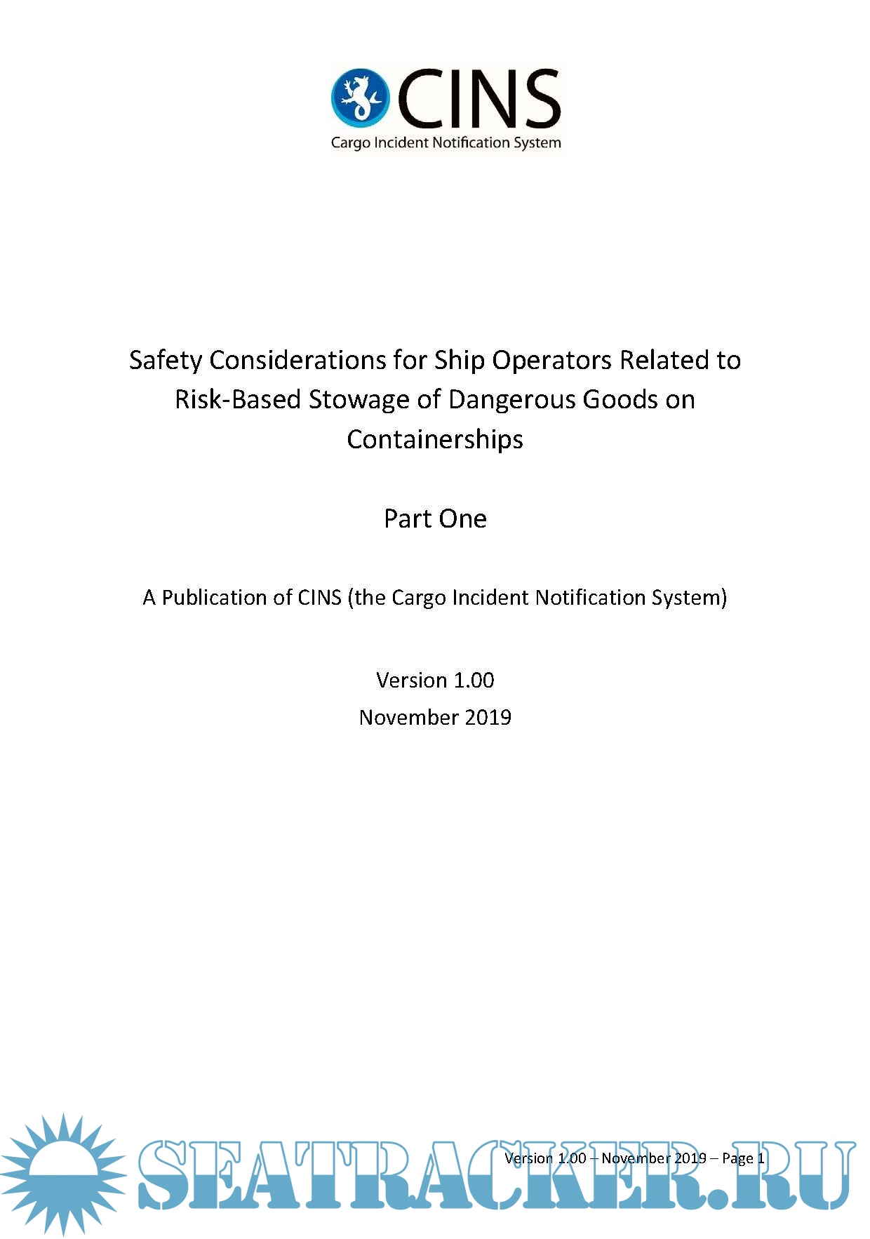 Year: 2019 Language: English Author: [url=http://seatracker.club/tracker.php?nm=CINS[/url] Edition: Version 1.00 November 2019 Format: PDF Quality: eBook Pages count: 18 Description: (Cargo Incident Notification System) and Classification Societies as listed below. The development has been coordinated by American Bureau of Shipping (ABS). The target audience includes ship operators, cargo carriers, and port personnel. The scope of this document is considered to be a first stage in a collective industry approach on this important matter which is designed to enhance safety on board container ships, recognising the significant complexities involved in achieving effective and compliant stowage of containers. Further, arising as they do from serious fire incidents in recent years, often relating to deficiencies in cargo declaration and packing, these Safety Considerations represent one of a number industry and regulatory initiatives.