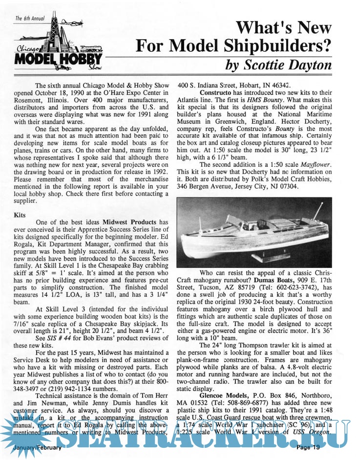 Year: 1991 Language: English Author: Scottie Dayton (Editor) Genre: Periodical (magazine) Edition: 1991-1 Format: PDF Quality: Scanned pages Pages count: 88 Description: Seaway is the home port for Seaways Ships in Scale magazine, the leading workshop and research magazine for the ship modeler. In the magazine we explore all levels of modeling experience, all types of ships, all kinds of models, all historical eras and all construction materials