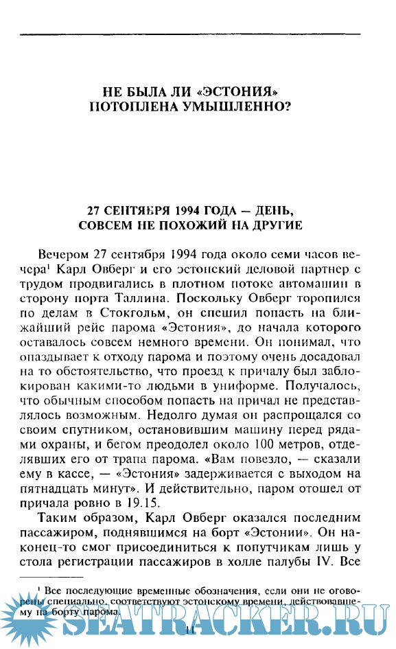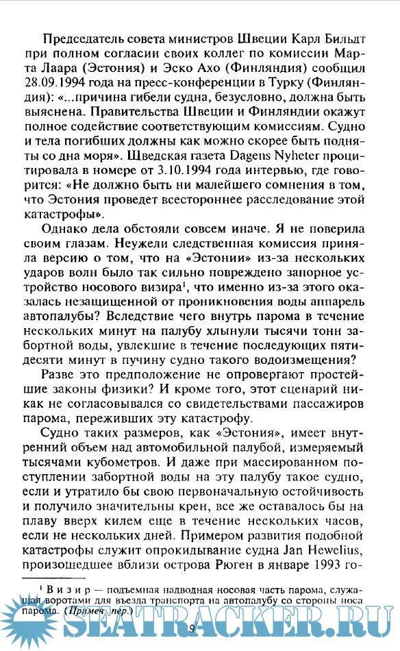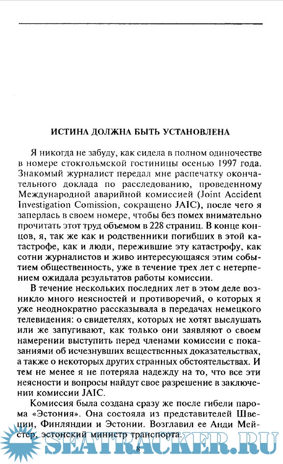 Описание: Загадки истории, несомненно, завораживают каждого, кто к ним прикасается. К таким тайнам относится и крушение парома "Эстония", которое произошло в ночь с 27 на 28 сентября 1994 года. В результате трагедии погибло 852, а спаслось всего 137 человек. Немецкая журналистка и продюсер Ютта Рабе провела свое расследование.