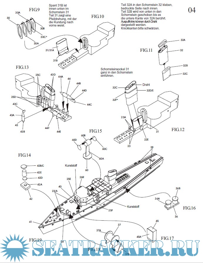 44 листа цветных выкроек и инструкций для изготовления бумажной модели тральщика класса T-371 в масштабе 1:250