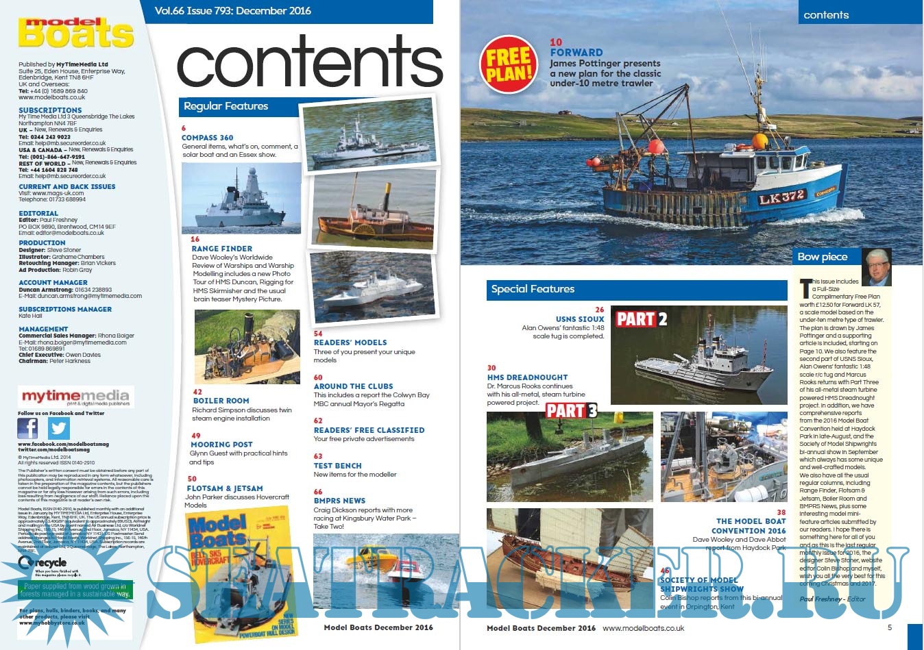 Year: 2016 Language: English Author: Lindsey Amrani (Editor) Edition: 2016-12 Format: PDF Quality: eBook Pages count: 76 Description: Model Boats magazine is a practical and informative read for those with a love for the hobby. It covers the latest news and views from the various clubs and associations around the country, useful hints, tips and step by step guides for those interested in the art of constructing a model boat as well as tests and recommendations of new boats and tools. Floating along behind these are great special features examining in depth different models from narrowboat to destroyer!