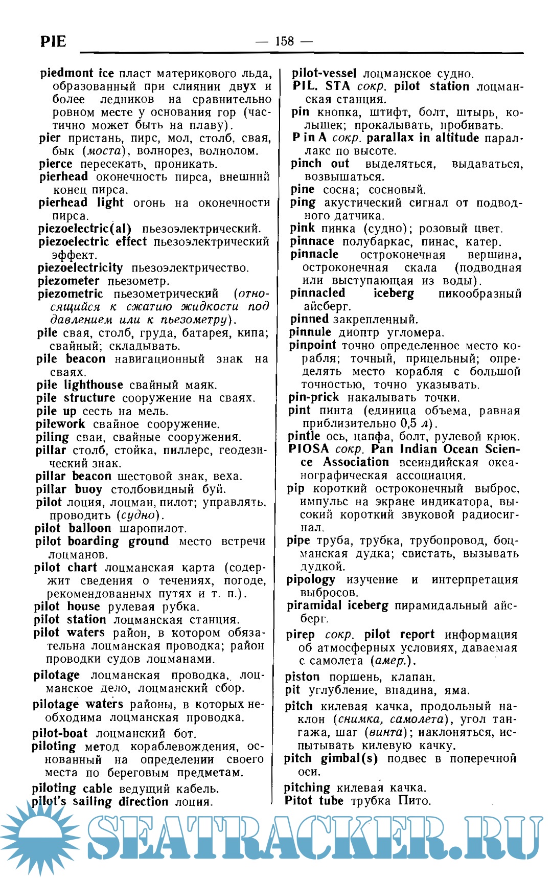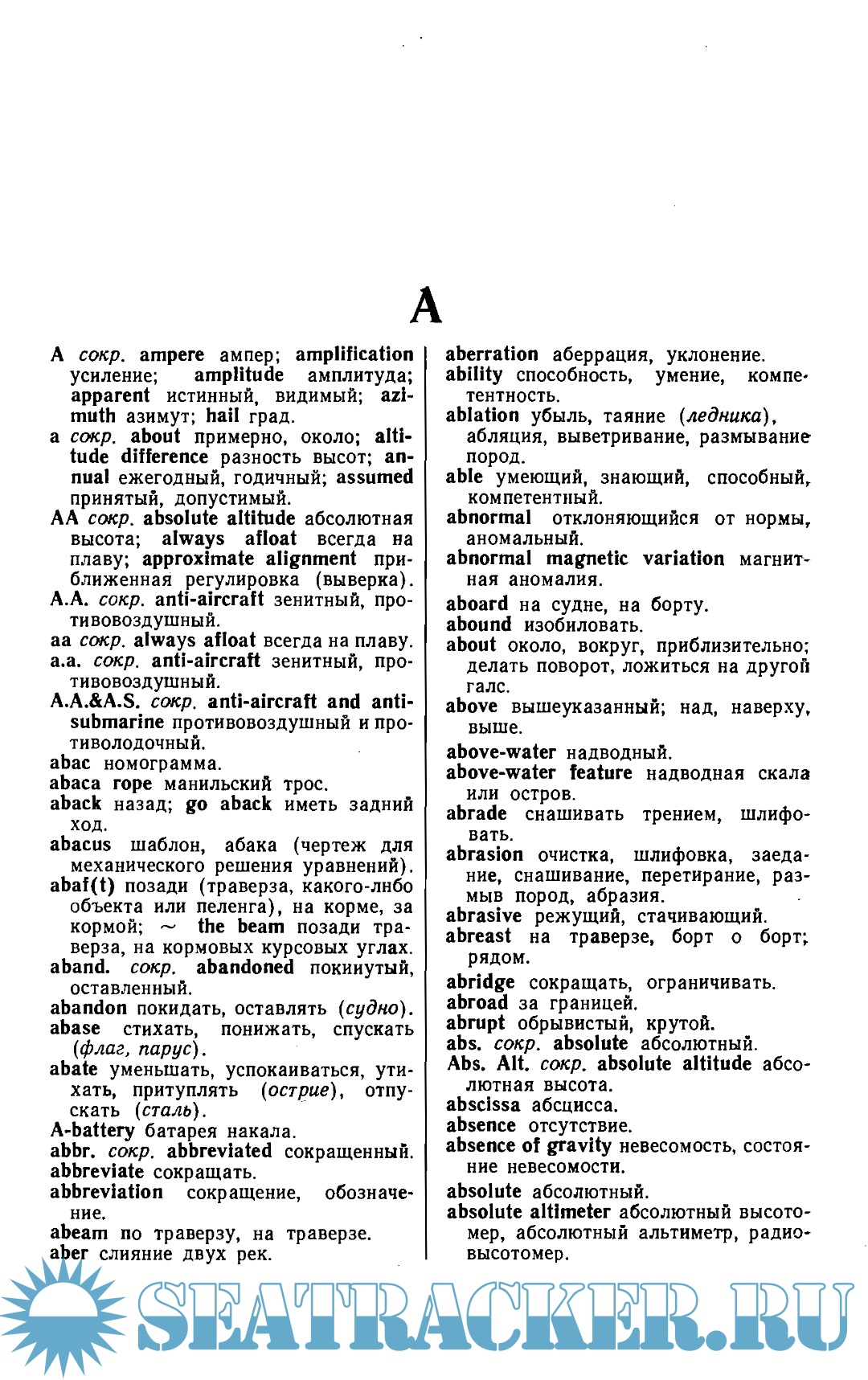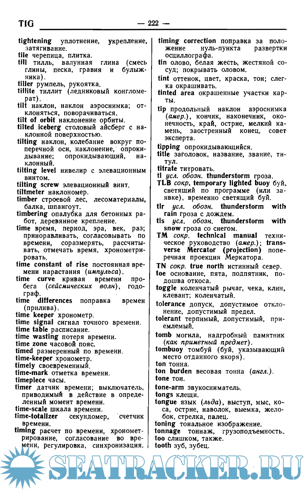 Year: 1971 Language: English / Russian Author: Сорокин А.И. Genre: Dictionary Publisher: МО СССР, Гидрографическое управление Format: PDF Quality: Scanned pages Pages count: 296 Description: В пособие «Англо-американская навигационно-гидрографическая терминология» включены термины, сокращения и идиоматические выражения по всему комплексу навигационно-гидрографических вопросов, причем особое внимание уделено терминологии, связанной с гидрографическими исследованиями Мирового океана. В пособии содержатся термины и специальные выражения по вопросам: — высшей геодезии, геодезической астрономии, топографии, нивелирования, аэрофотосъемки, подводных фотосъемки и телевидения; — радионавигационных и гидроакустических средств определения места в океане, мореходной астрономии, спутниковой навигацнн, средств счисления, навигационных пособий и средств навигационного оборудования театра; — изучения рельефа дна, гидрографического траления, определения характера донного грунта и стратификации осадочных пород; — изучения физических полей Земли в океане (гравитационного, магнитного и электрического), гидрологии и морской метеорологии; — средств обработки результатов измерений, математической картографии, картосоставления и картоиздательства. Кроме этого даны основные термины по устройству корабля и морской практике. В связи с тем, что в навигационно-гидрографической литературе часто встречаются некоторые термины из смежных областей знания (географии, геологии, геофизики, математики, механики, оптики, радиоэлектроники н т. д.), они также включены в пособие, наряду со словами и выражениями, которые, строго говоря, не относятся к научно-технической терминологии, но являются специфическими для навигационно-гидрографических изданий. Пособие состоит нз англо-русского словаря и русско-английского указателя. Англо-русский словарь содержит около пятнадцати тысяч англо-американских терминов, сокращений и идиоматических выражений с переводом их на русский язык.