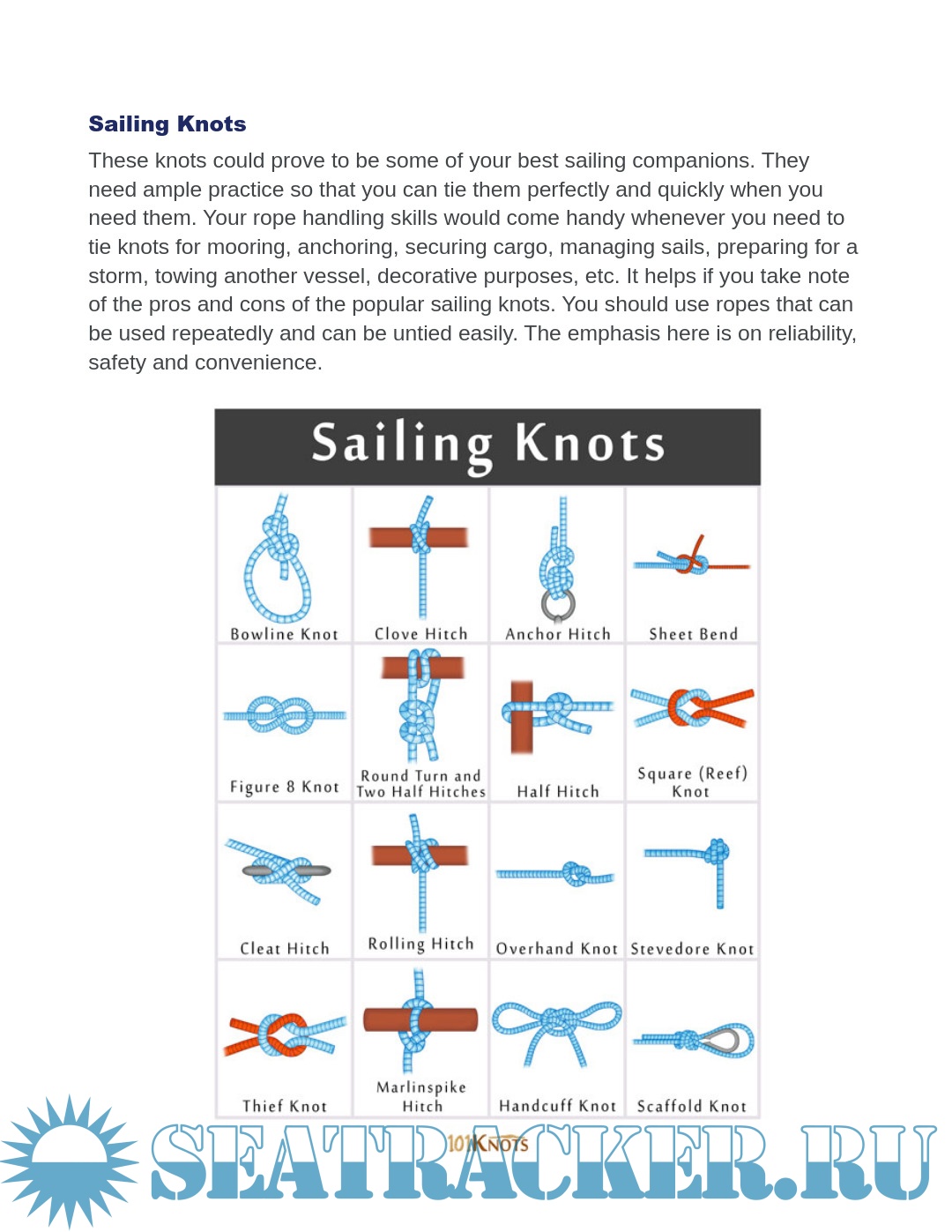 Description: These knots could prove to be some of your best sailing companions. They need ample practice so that you can tie them perfectly and quickly when you need them. Your rope handling skills would come handy whenever you need to tie knots for mooring, anchoring, securing cargo, managing sails, preparing for a storm, towing another vessel, decorative purposes, etc. It helps if you take note of the pros and cons of the popular sailing knots. You should use ropes that can be used repeatedly and can be untied easily. The emphasis here is on reliability, safety and convenience.