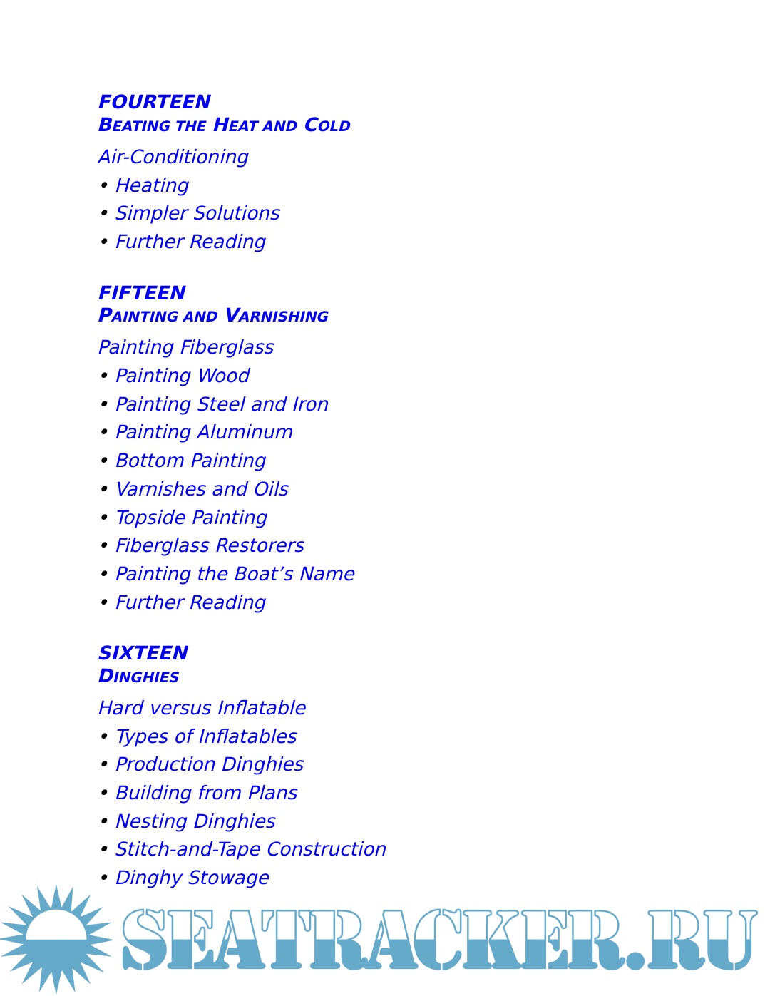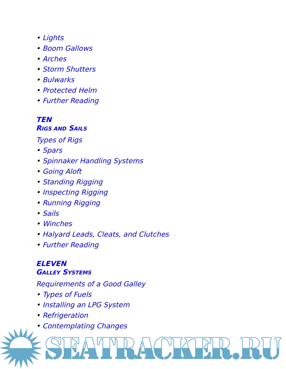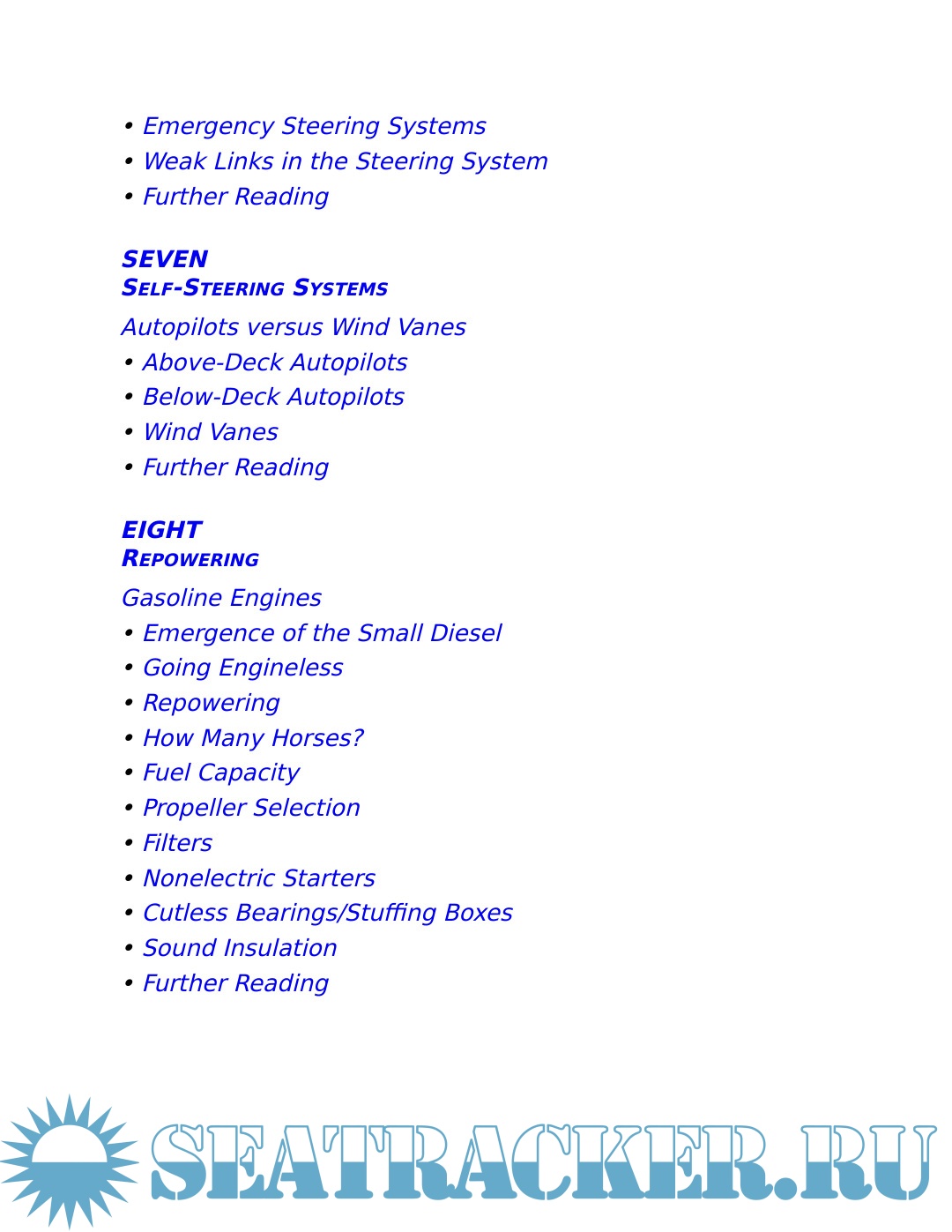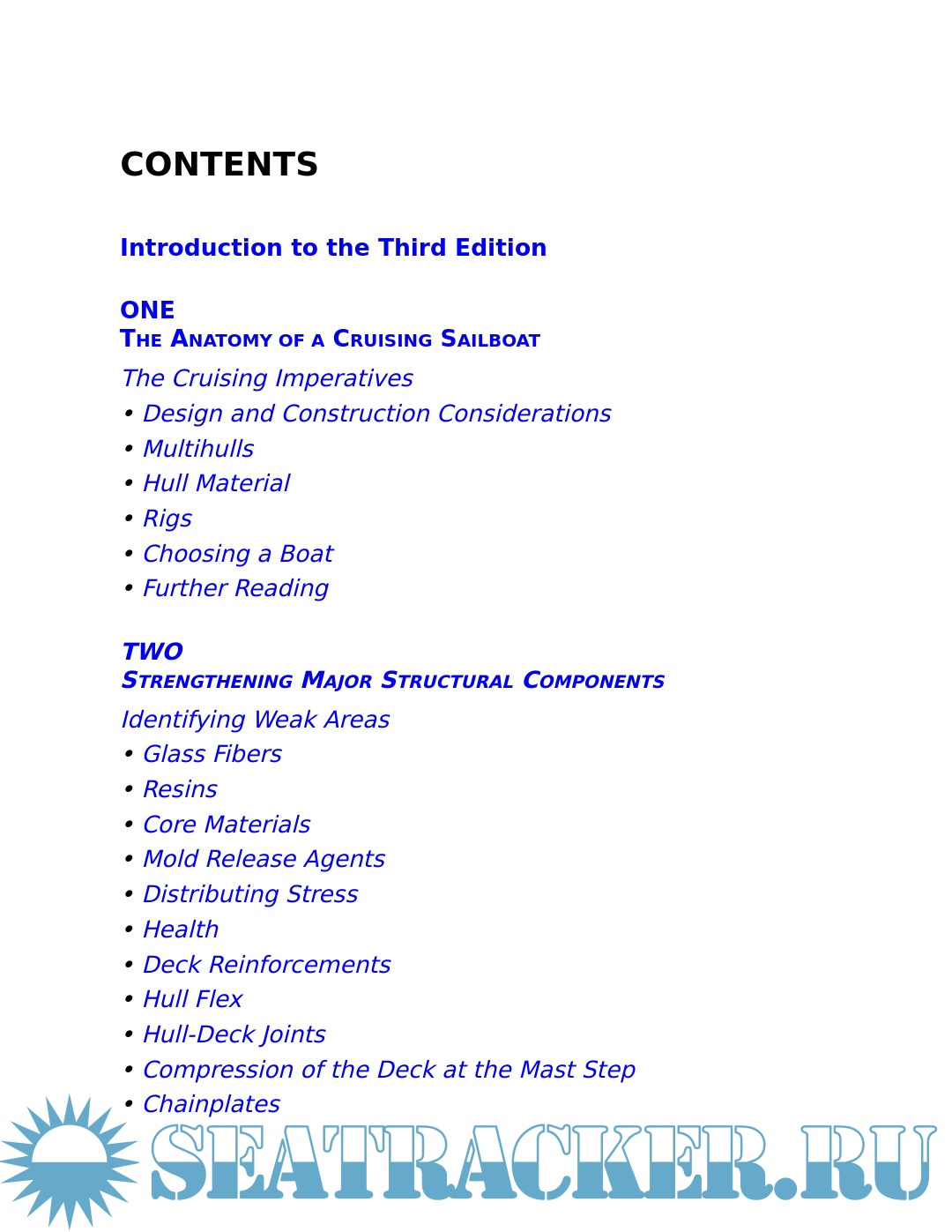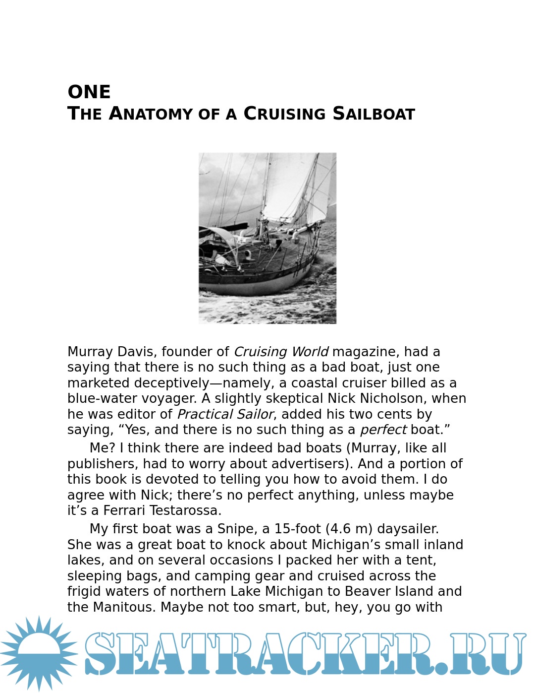 Year: 2006 Language: English Author: Spurr D. Genre: Manual Publisher: International Marine/Ragged Mountain Press Edition: 3rd ISBN: 9780071455367 Format: PDF/EPUB Quality: eBook Pages count: 1003 Description: Is your boat ready to go cruising? Just about every sailboat―used and new―can make a good cruiser, but only if the hull-deck structure, rig, and systems meet certain standards. Spurr’s Guide to Upgrading Your Cruising Sailboat tells you what those standards are, and gives you all the help you need to refurbish and upgrade every structure, surface, fitting, and system on your boat―stem to stern, project by project. This all-in-one guide leads you step by step to a seaworthy, crew-friendly boat with top-notch cruising performance. Not only will you learn what to look for when you buy a new or used boat, you'll also learn how to reinforce your boat’s hull and structural components, redesign and replace rigging, upgrade electrical systems, and much more. Special features include: A detailed survey of 70 used and new fiberglass sailboats best suited to offshore sailing Gear and equipment recommendations by brand name Construction details and other essential features of a strong, safe cruising boat How to make critical repairs to the deck, hull, bulkheads, blisters, and portlights