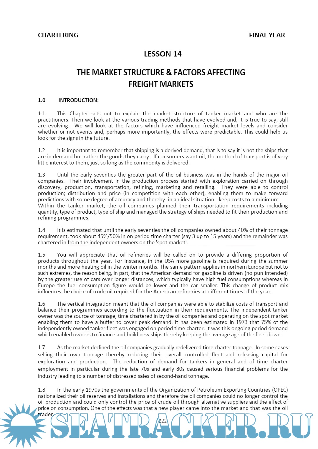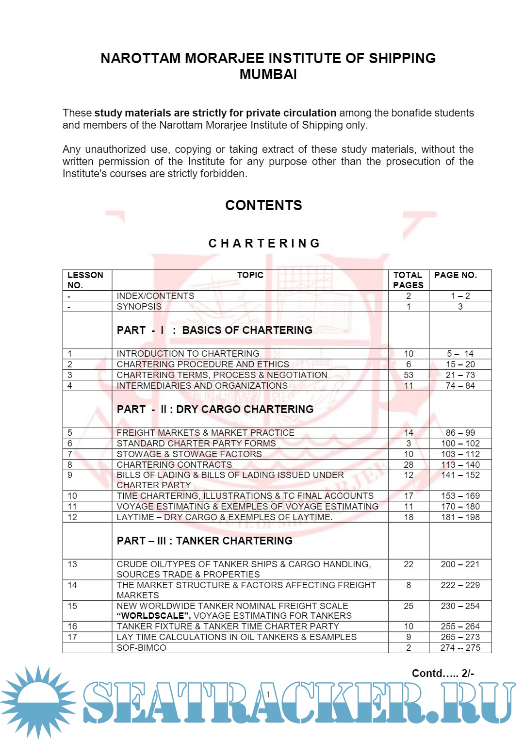 Chartering (Study Maerial) - NAROTTAM MORARJEE INSTITUTE OF SHIPPING MUMBAI