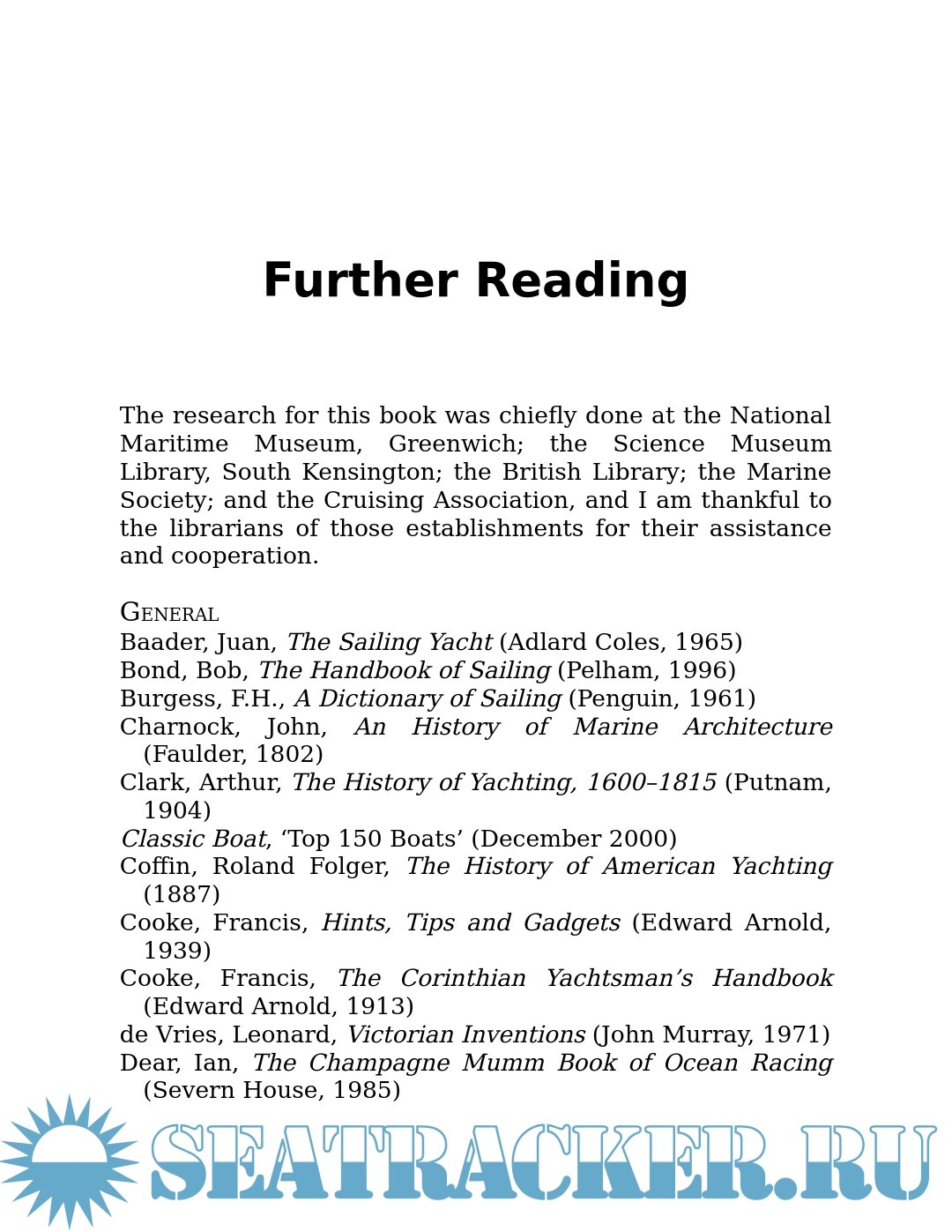 Year: 2011 Language: English Author: Drower G. Genre: History Publisher: The History Press Format: PDF/EPUB Quality: eBook Pages count: 203 Description: Which woman made the first solo transatlantic crossing? Who saved thousands of lives with the invention of navigation lights? What is the story behind the invention of the compass? Who was Francis Beaufort and how did he come to devise the Beaufort wind scale, still used to this day? Why did William Petty invent the catamaran (in 1662)? Many of us know the story of modern sailing pioneers -- Dame Ellen MacArthur and Francis Chichester, Claire Francis and the challengers of the Americas Cup -- but what about those unsung heroes who invented the mechanisms and technology which enabled sailors to speed across the oceans and navigate more safely? This fascinating book reveals the extraordinary stories behind the apparatus which many take for granted. Learn how the Frenchman Boulanger produced the first binoculars in 1859, enabling sailors to spy landmarks more effectively; or how William Armstrong earned sailors' gratitude by devising the yacht winch. From cloud classification and screw propellers to radio telephones and the measurement of tides, from the sextant to the first fibreglass boat, this collection of stories, with a foreword by Ben Ainslie, Olympic gold medal winner, will inspire and intrigue sailors everywhere.