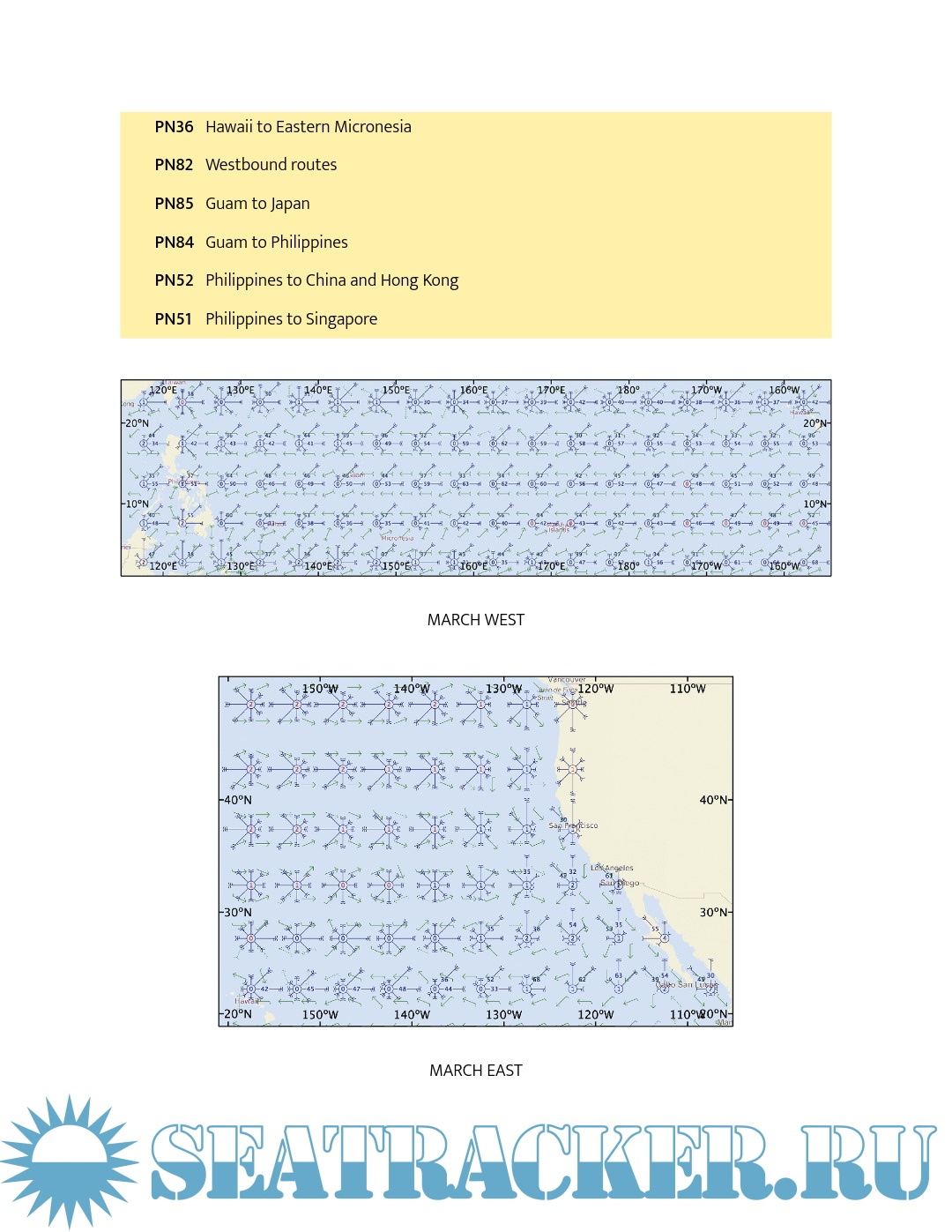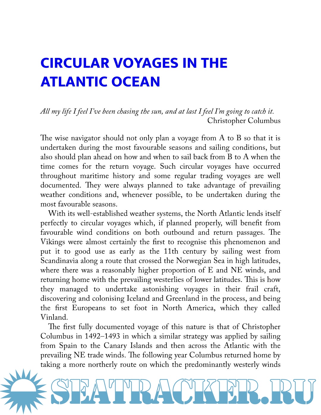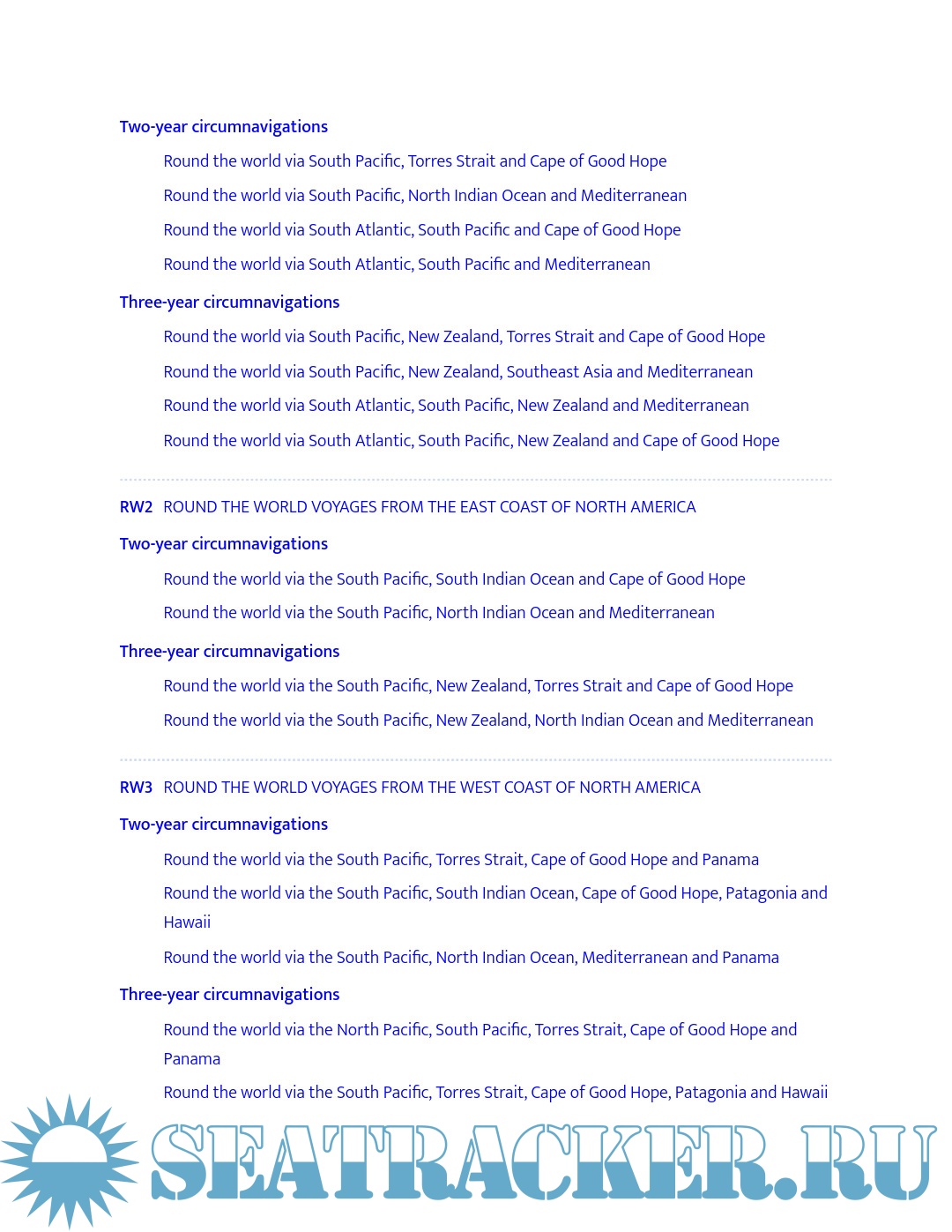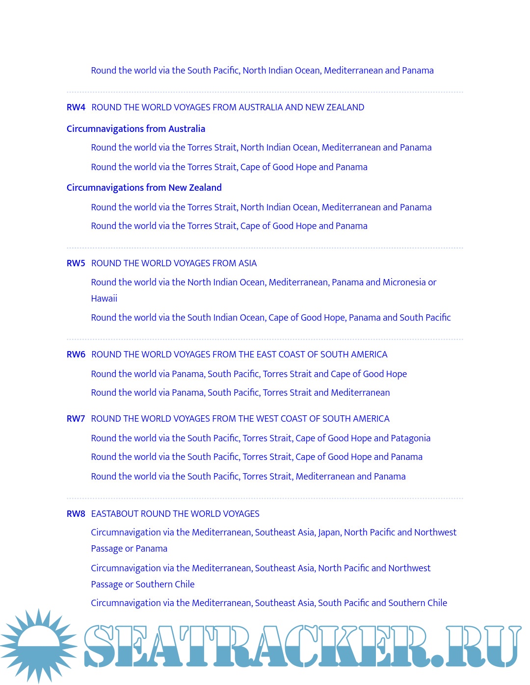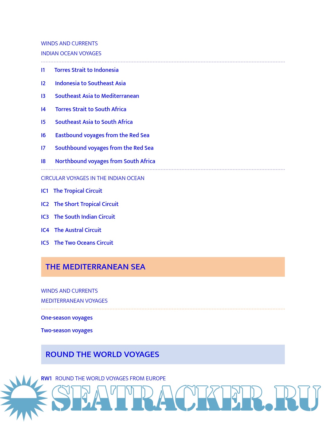 - Strategies for sailing long or short circuits in the Atlantic, Pacific and Indian Oceans