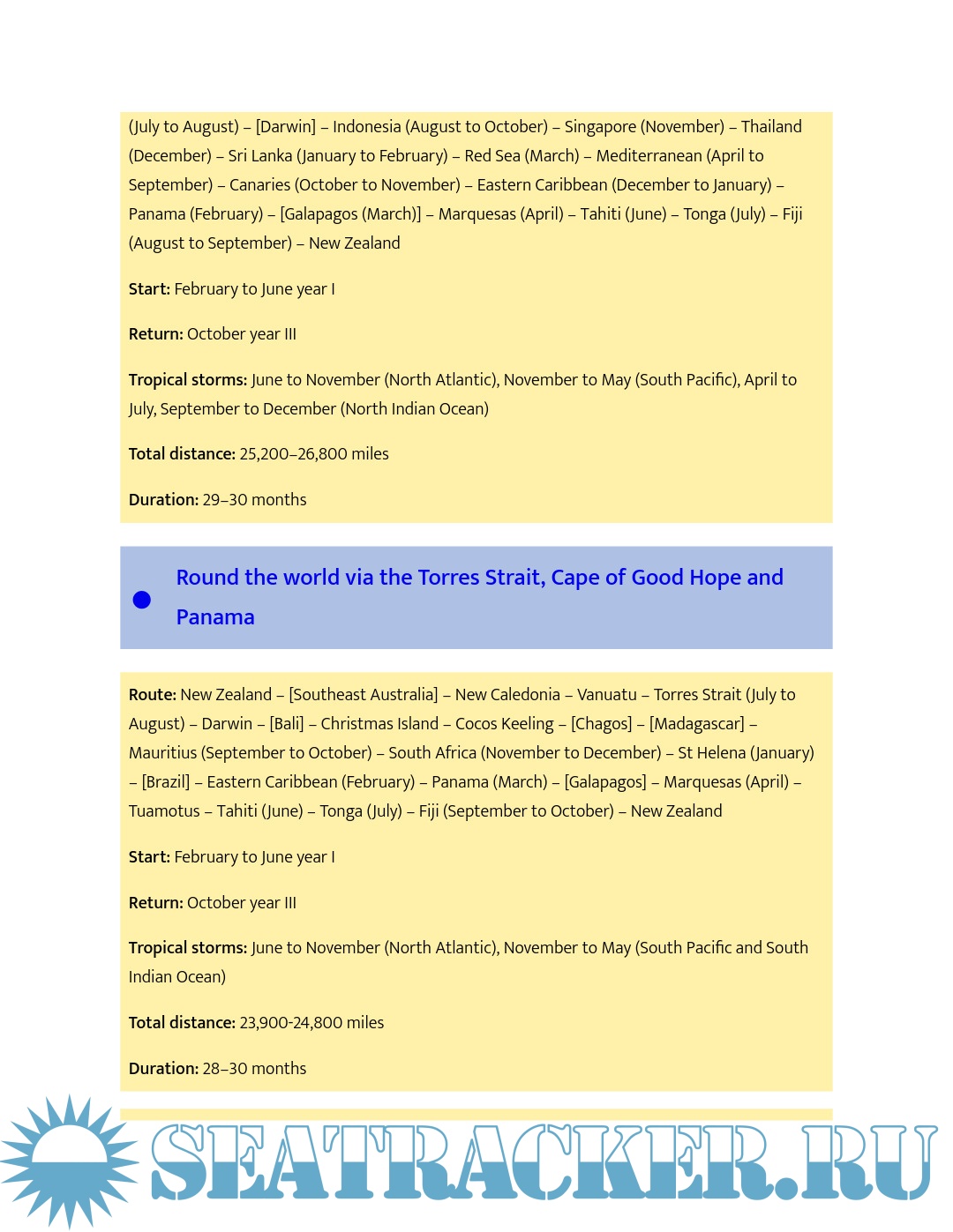 - The pros and cons of different routes at different times of year (taking into account weather, currents, wind directions and strengths, likelihood of fog, icebergs, gales, piracy etc)