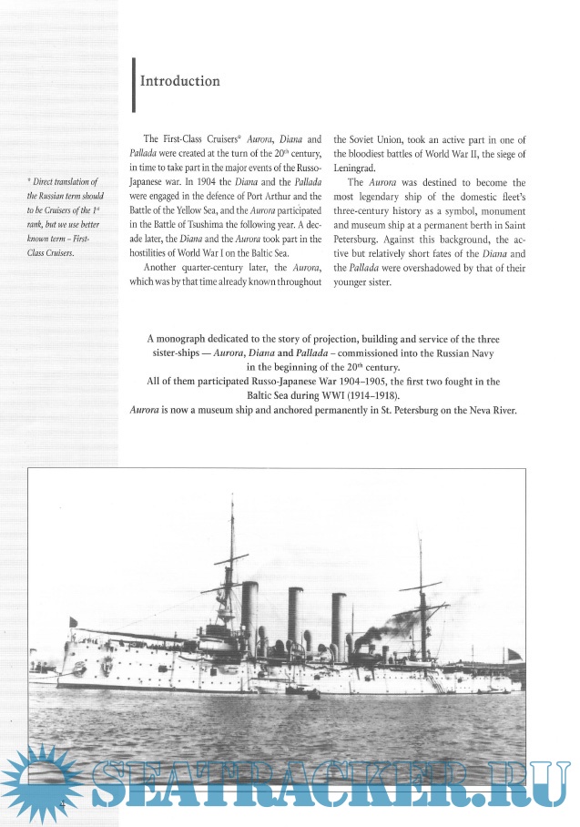Description: A monograph dedicated to the story of construction, building and service of the three sister-ships - “Aurora”, ”Diana” and “Pallada”, commissioned into the Russian Navy in the beginning of XX century.