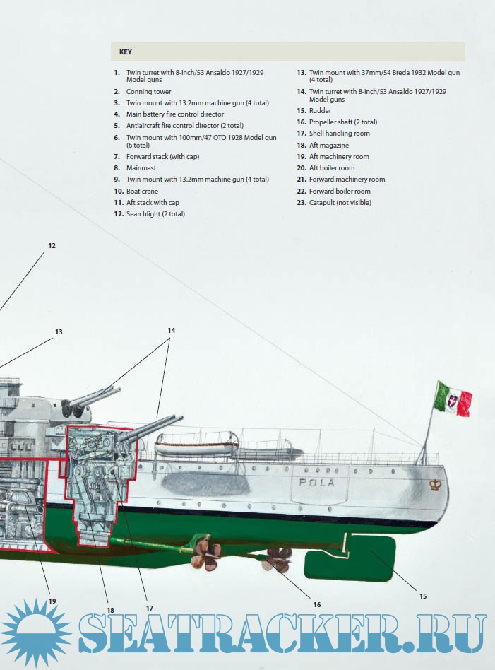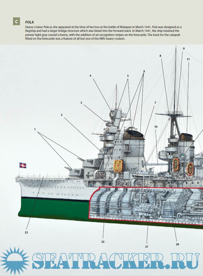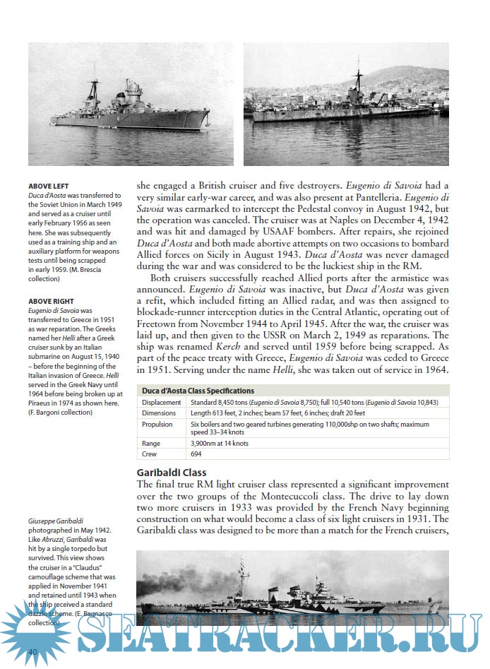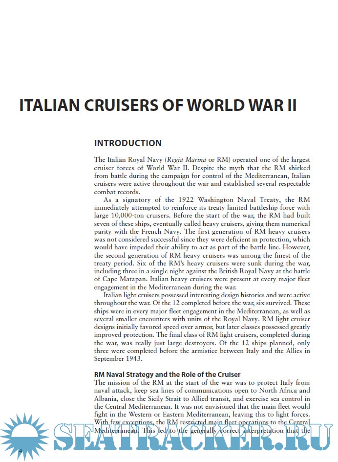 Description: The Italian Royal Navy (Regia Marina) operated one of largest cruiser forces of World War II. As a signatory to the 1922 Washington Naval Treaty, the Regia Marina immediately attempted to reinforce its treaty-limited battleship force by building seven large 10,000-ton heavy cruisers. Italian light cruisers also possessed an interesting design history and were involved in every major fleet engagement in the Mediterranean, as well as several smaller encounters with units of the British Royal Navy.