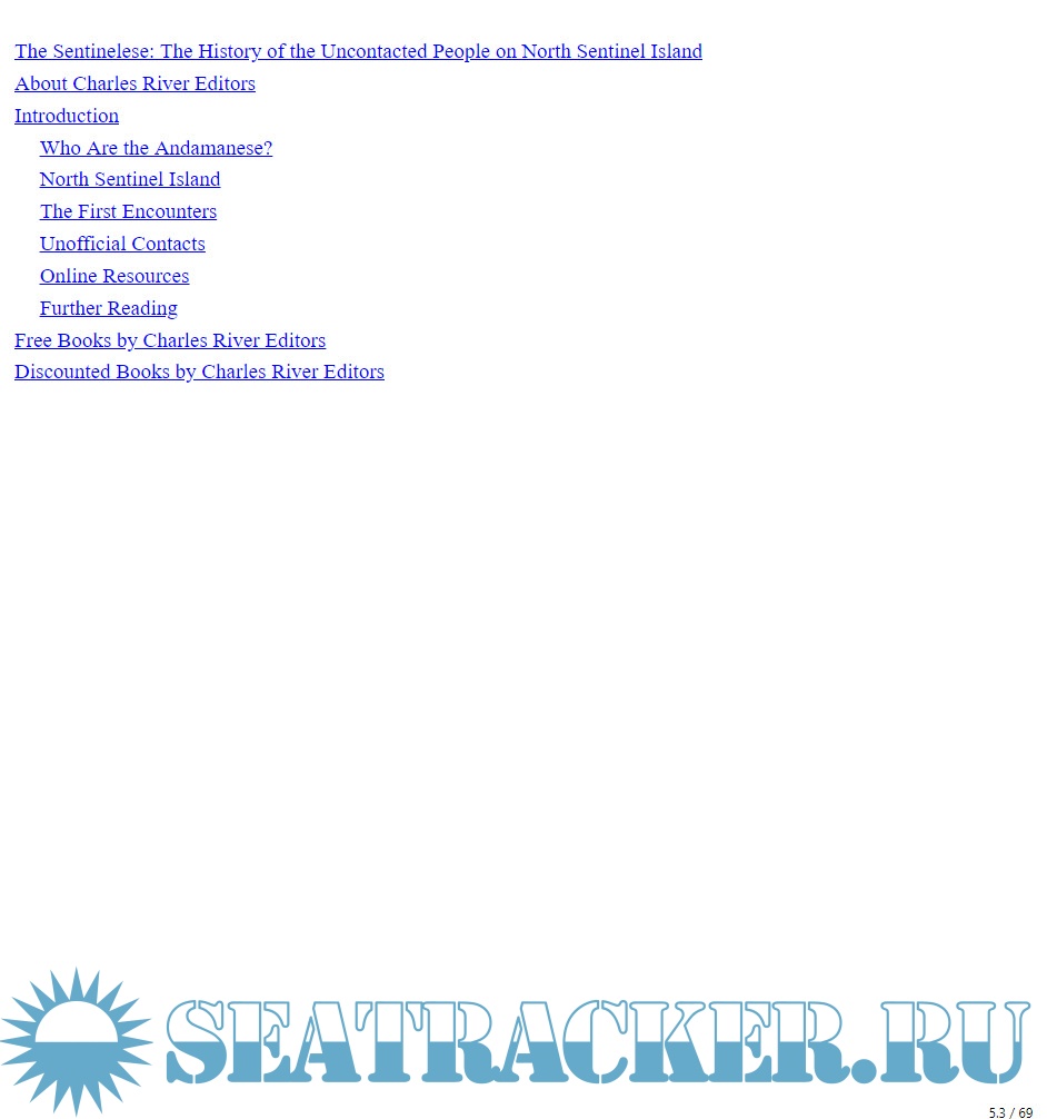 Year: 2019 Language: english Author: Charles River Editors Genre: History Format: EPUB Quality: eBook Pages count: 69 Description: There is no record of Marco Polo ever visiting the Andaman Islands, so his brief description of the islanders must have been drawn from a secondary source. They were, he wrote, “a most brutish and savage race, having heads, eyes, and teeth like those of dogs. They are very cruel, and kill and eat every foreigner whom they can lay their hands upon.” Most subsequent travelers and travelogues have tended to agree, although in an age of inclusion and diversity, the modern understanding and appreciation of the indigenous Andamanese is somewhat more sympathetic. Nonetheless, that one common theme has persisted, in particular in the many colonial-era chronicles, which were all written at a time when Darwin and his contemporaries were rationalizing evolution, and evolutionary divergence. How could it be, they ask, that a small pocket of the human race could be content to linger so far behind in the journey of human development? The Andaman and Nicobar Islands comprise a tiny archipelago of some 200 islands in the Indian Ocean. They are located in a seemingly insignificant spot in the Bay of Bengal, comprising a combined area of only 3,500 square miles, but the islands are a tropical idyll, populated by dark Indians drawn mainly from the east coast, with a curious aboriginal people who appear more African than Asian. The islands have been within sight of international shipping routes since the very birth of ocean travel, and yet, until the arrival of the great European trading enterprises, the archipelago remained virtually unvisited, and absolutely unsettled by any other than its indigenous inhabitants. The Sentinelese: The History of the Uncontacted People on North Sentinel Island profiles the indigenous people, famous attempts to contact them, and what’s known and unknown about them. Along with pictures of important people, places, and events, you will learn about the Sentinelese like never before.