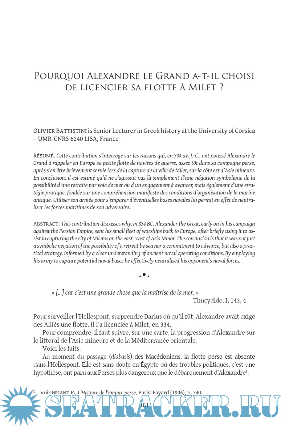 Pourquoi Alexandre le Grand a-t-il choisi de licencier sa flotte Milet? - Olivier Battistini (University of Corsica)