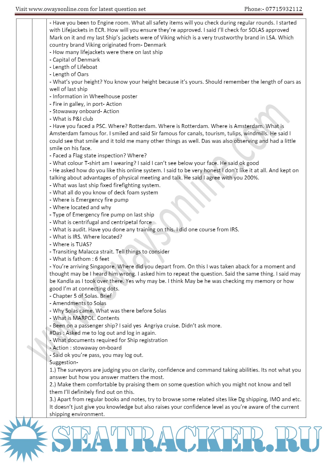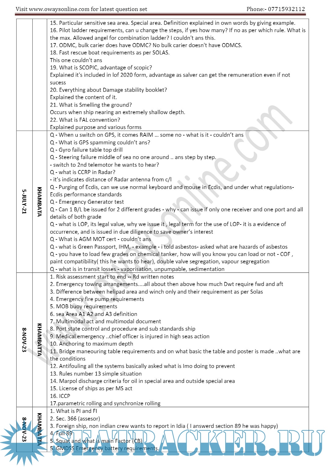 Description: Orals Question Bank for ASM (Advanced Shipboard Management) / Master's Mercantile Marine Department (MMD), India Examinations.
