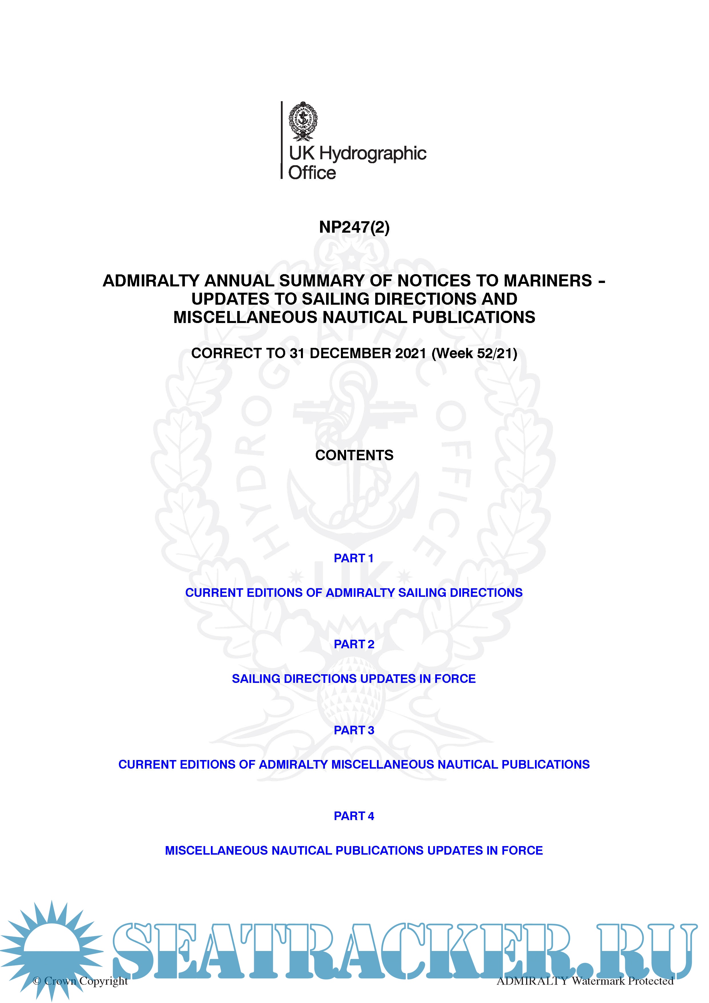 NP247 ADMIRALTY Annual Summary of Notices to Mariners Parts 1 & 2