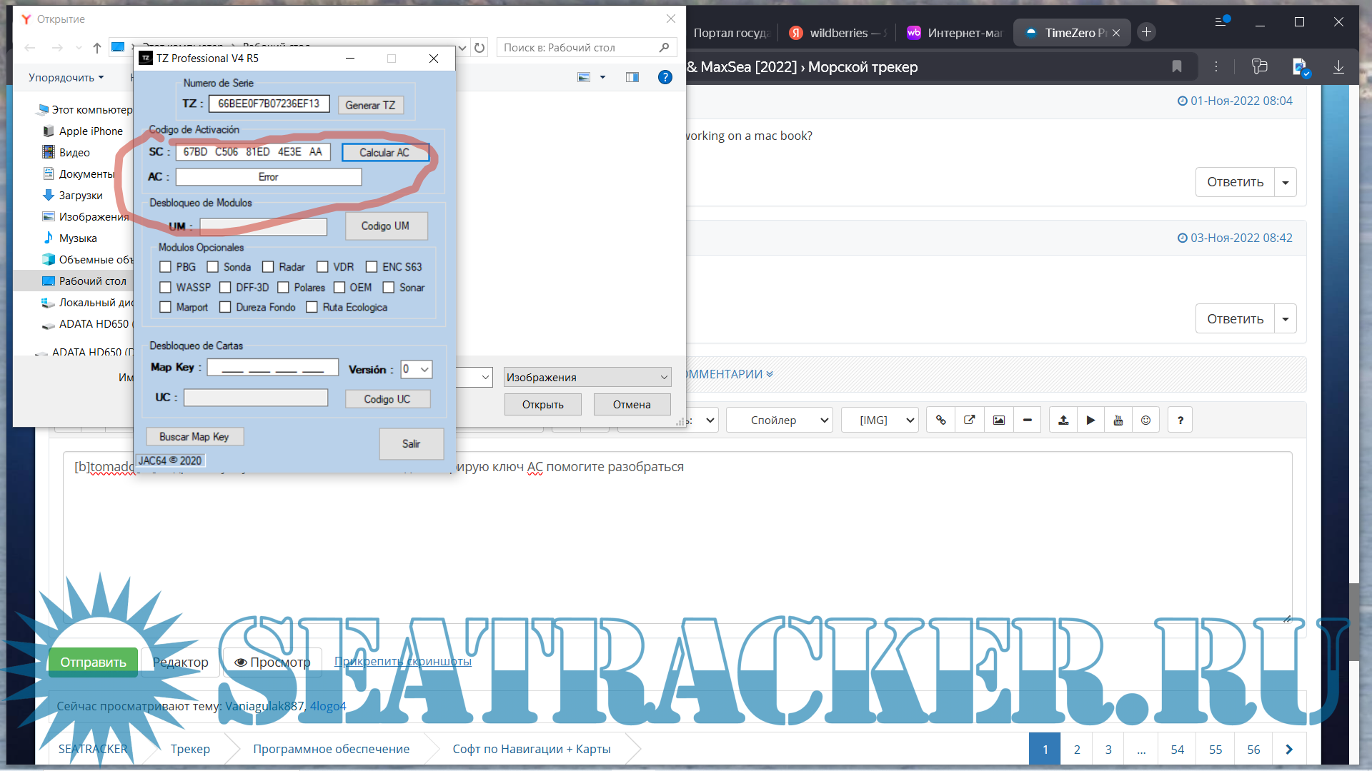Vaniagulak887, If problems with activating TZ (error ac ) do thisdelete license file at C:\Program Data\CrypKey\Licenses folder and , also you need to delete serial_number file at folder C:\ProgramData\TimeZero\MetaCatalogWhen you are done with that begin with all the activation process againoruninstall TZ v4delete C:\ProgramData\CrypKey\Licensesdelete C:\ProgramData\TimeZeroRESTART computerkill process crp32002.ngn if runningreinstall TZ V4.1.0.53 with a new serial numberor1 - close Timezero2 - open task manager and kill all the task running named crp320002.ngn3 - delete folder C:\ProgramData\CrypKey\Licenses4 - remove the serial number file in programdata/timezero/metacatalog5 - Deactivate your internet connection6 - launch again Τimezero and try again the activation.7 - reactivate TZ with a new serial number and you should be back in business.