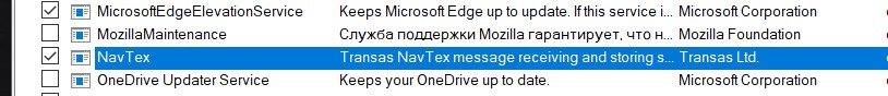 Also check Services and find NavTex service if running(right click on taskbar-Task Manager-Services,scroll down and find NavTex)