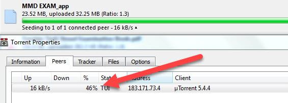 T flag means that you are seeding file via udp protocol. We don't use udp protocol. Someone connect to you through opentbittorrent