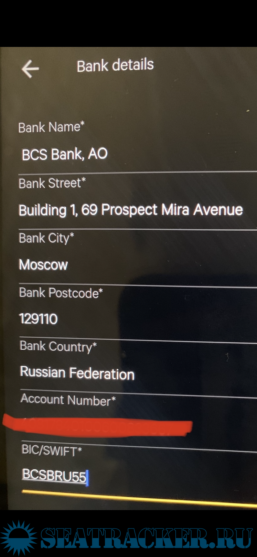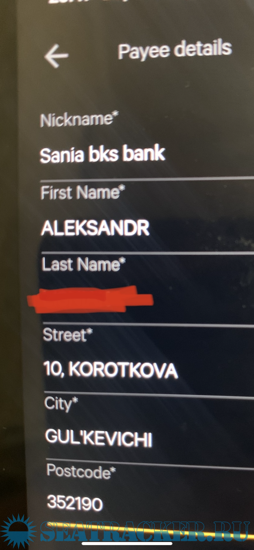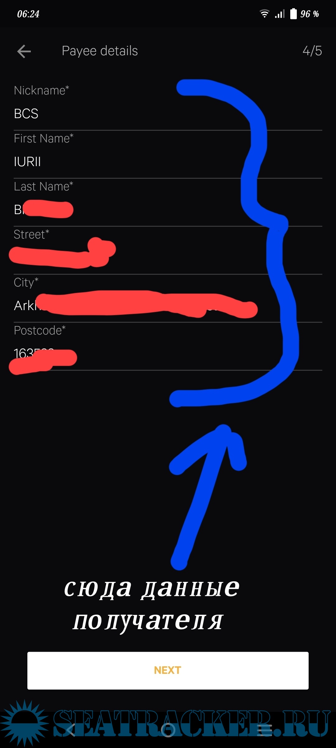 Там же все написано черными буквами на английском языке, а в своей колхозной инструкции я добавил чуточку русского языка. И данные получателя вбивайте так как указано в реквизитах, а не в паспорте