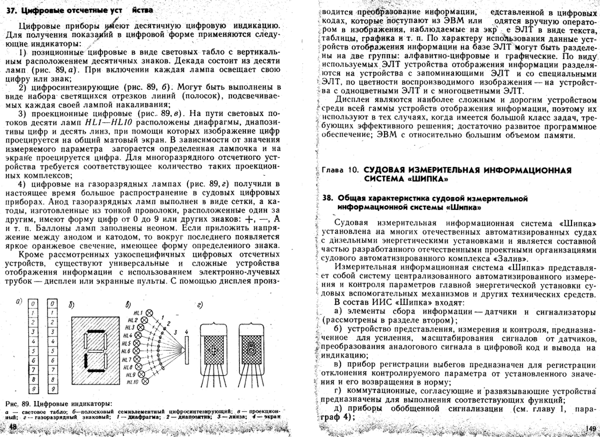 Введение . —Раздел первый ЭЛЕКТРИЧЕСКАЯ СИГНАЛИЗАЦИЯ Глава 1. Электрические сигнальные приборы и устройства 1. Виды электрической сигнализации 2. Приборы акустической сигнализации 3. Приборы оптической сигнализации 4. Схемы судовой электрической сигнализации Глава 2. Система пожарной сигнализации 5. Классификация систем пожарной сигнализации 6. Пожарные извещатели. 7. Система пожарной сигнализации ТОЛ-10/50-С 8. Эксплуатация систем пожарной сигнализации Раздел второй УСТАНОВКИ ЭЛЕКТРИЧЕСКОГО ИЗМЕРЕНИЯ НЕЭЛЕКТРИЧЕСКИХ ПАРАМЕТРОВ Глава 3. Электрические измерения температуры 9. Установки измерения и контроля температуры с помощью терморезисторов. 10. Установки измерения температуры с помощью термопар 11. Контактные и манометрические термометры Глава 4. Электрические измерения давления и уровня 12. Установки цифрового измерения давления 13. Установки измерения, индивидуального контроля и сигнализации давления 14. Установки контроля уровня жидкости Глава 5. Судовые анализаторы газов, солености, чистоты > льяльных вод 15. Судовые газоанализаторы . 16. Солемеры. 17. Установки измерения и контроля чистоты трюмнобалластных вод . Глава 7. Синхронные передачи 18. Тахометры вольтметрового типа 19. Индукционные тахометры . 20. Компенсационные тахометры. Раздел третий СИНХРОННЫЕ ПЕРЕДАЧИ И СУДОВЫЕ ЭЛЕКТРИЧЕСКИЕ ТЕЛЕГРАФЫ Глава 7. Синхронные передачи 21. Общие сведения о синхронных передачах . 22. Потенциометрическая система спхронной передачи изменяющейся частоты . 23. Индукционная система синхронной передачи Глава 8. Судовые электрические телеграфы Глава 9. Измерительные информационные системы. 28. Классификация систем 36. Дешифраторы Глава 10. «Шипка» М информационная система 39. Цифровое измерение параметровf, 40. Основные узлы тракта цифрового измерения ' ' fi Раздел пятый ВНУТРИСУДОВАЯ ТЕЛЕФОННАЯ СВЯЗЬ Глава 1 Основы телефонной связи 44. Принципы телефонной передачи папамртп^ « Восприятие звуковых колебаний» Глава 12. Системы внутрисудовой телефонной связи, телефон-А7 5/ аппараты и коммутаторы 49. Судовые телефонные аппараты