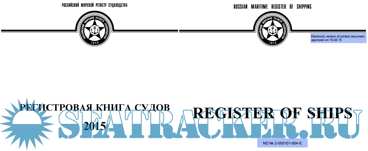 Регистровая книга судов. Russian Maritime Register of Shipping.
