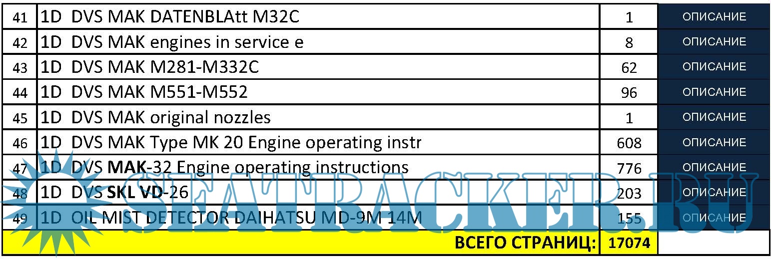 Год выпуска: 2007 Язык: Русский / Английский Автор: ERMO83 Жанр: Documentation Издательство: OVIMU 33-43 Издание: 10-2007 Формат: PDF Качество: Отсканированные страницы + слой распознанного текста Количество страниц: 17074 Описание: ORIGINAL MANUALS 4-STROKE ENGINE CATERPILLAR, MAK, DAIHATSU ,PIELSTICK,SKL AND SIMMILAR, WITH DROWINGS. ADD BOOKS FOR ENGINEERS. ДИСК СОДЕРЖИТ УЧЕБНИКИ,СПРАВОЧНИКИ А ТАКЖЕ ОРИГИНАЛЬНУЮ ДОКУМЕНТАЦИЮ ПО ДВС ТИПА CATERPILLAR, MAK,DAIHATSU,PIELSTICK,SKL С ЧЕРТЕЖАМИ, ОПИСАНИЯМИ,ПРЕЗЕНТАЦИЯМИ,НОВЫМИ ДОКУМЕНТАМИ (ВСЕГО 41 ДОКУМЕНТ И 17 074 СТРАНИЦ)