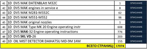 1 1 DVS CATERPILLAR 3054,3056,3408 ORIGINAL COPY 1928 ОПИСАНИЕ 2 1 DVS CATERPILLAR 3054,3056,3408,GENERATORS 2734 ОПИСАНИЕ 3 1 DVS PIELSTICK PC Type Engine SERVICE INFORM 162 ОПИСАНИЕ 4 1 ПТЭ ДИЗЕЛЯ (UA) 59 РУКОВОД-ДОК 5 1 ДВС CATERPILLAR 8 УЧЕБНИК 6 1 ДВС АВТОМАТИЗАЦИЯ СДВС ЛАНЧУКОВСКИЙ КОЗЬМИНЫХ 335 УЧЕБНИК 7 1 ДВС ДИАГНОСТИРОВАние дизеля по цвету выпускных газов 1 УЧЕБНИК 8 1 ДВС МОРСКИХ СУДОВ ХУДОВ САМСОНОВ 374 УЧЕБНИК 9 1 ДВС НЕИСПРАВНОСТИ дизелей 11 УЧЕБНИК 10 1 ДВС НЕИСПРАВНОСТИ ОСНОВНЫЕ дизелей 20 УЧЕБНИК 11 1 ДВС ПРАКТИЧЕСКИЕ РЕКОМЕНДАЦИИ ПО СМАЗКЕ СУД ДИЗ Возн 142 УЧЕБНИК 12 1 ДВС РЕГУЛИРОВАНИЕ СУДОВЫХ ДИЗЕЛЕЙ Н И КОРОЛЕВ 145 УЧЕБНИК 13 1 ДВС СОВРЕМЕННЫЕ СОД ВОЗНИЦКИЙ 138 УЧЕБНИК 14 1 ДВС СПРАВОЧНИК ПО РЕМОНТУ ДИЗЕЛЕЙ МОРСКИХ СУДОВ 280 УЧЕБНИК 15 1 ДВС СУДОВЫЕ ДИЗЕЛИ И ИХ ЭКСПЛУАТАЦИЯ -Возницкий 358 УЧЕБНИК 16 1 ДВС ТЕОР ХАР-КИ ГД 16 УЧЕБНИК 17 1 ДВС ТОПЛИВНАЯ АППАРАТУРА ДИЗЕЛЕЙ ФОМИН 213 УЧЕБНИК 18 1 КАТАЛОГ CATERPILLAR 507 КАТАЛОГ 19 1 КАТАЛОГ DREW MARINE AMEROID RUSS 834 КАТАЛОГ 20 1 КАТАЛОГ UNITOR MSCD 2858 КАТАЛОГ 21 1 СПРАВОЧНИК МОТОРИСТА ДВС 273 СПРАВОЧНИК 22 1 СПРАВОЧНИК ТОПЛИВО по ГСМ Гулин Сомов Чечот 327 СПРАВОЧНИК 23 1 ЭКСПЛУАТАЦИЯ СЭУ 36 РУКОВОД-ДОК 24 1 ЭЛЕМЕНТАРНАЯ ДИАГНОСТИКА 7 СПРАВОЧНИК 25 1D DVS CATERPILLAR 3054 and 3056 Marine Generator Sets 140 ОПИСАНИЕ 26 1D DVS CATERPILLAR 3056 Marine-Generator SPARE PARTS 514 ОПИСАНИЕ 27 1D DVS CATERPILLAR 3408C & 3412C Aux OMM 140 ОПИСАНИЕ 28 1D DVS CATERPILLAR 3408C Marine Auxiliary Generator Set 668 ОПИСАНИЕ 29 1D DVS CATERPILLAR CAT3306B MARINE GENERATOR SET 128 ОПИСАНИЕ 30 1D DVS CATERPILLAR CAT3500В RUSS 178 ОПИСАНИЕ 31 1D DVS CATERPILLAR CAT3500В КАРЕРПИЛЛЕР РУССК 194 ОПИСАНИЕ 32 1D DVS CATERPILLAR CAT3512B-HD & CAT 3306 РУССК 100 ОПИСАНИЕ 33 1D DVS CATERPILLAR Generators 02-SR4 OMM 64 ОПИСАНИЕ 34 1D DVS CATERPILLAR mainmenu 7 ОПИСАНИЕ 35 1D DVS DAIHATSU 6DK-20 OPERATION MANUAL 628 ОПИСАНИЕ 36 1D DVS DAIHATSU PS 26 77 ОПИСАНИЕ 37 1D DVS EM GENERATOR 6CTA O-M MANUAL 358 ОПИСАНИЕ 38 1D DVS EM GENERATOR 6CTA8 3 PARTS CATALOG 6CT 172 ОПИСАНИЕ 39 1D DVS EM GENERATOR B50G Handraulic Service Instruction Manual 29 ОПИСАНИЕ 40 1D DVS MAK DATENBLAtt M25 1 ОПИСАНИЕ 41 1D DVS MAK DATENBLAtt M32C 1 ОПИСАНИЕ 42 1D DVS MAK engines in service e 8 ОПИСАНИЕ 43 1D DVS MAK M281-M332C 62 ОПИСАНИЕ 44 1D DVS MAK M551-M552 96 ОПИСАНИЕ 45 1D DVS MAK original nozzles 1 ОПИСАНИЕ 46 1D DVS MAK Type MK 20 Engine operating instr 608 ОПИСАНИЕ 47 1D DVS MAK-32 Engine operating instructions 776 ОПИСАНИЕ 48 1D DVS SKL VD-26 203 ОПИСАНИЕ 49 1D OIL MIST DETECTOR DAIHATSU MD-9M 14M 155 ОПИСАНИЕ TOTAL PAGES : 17074