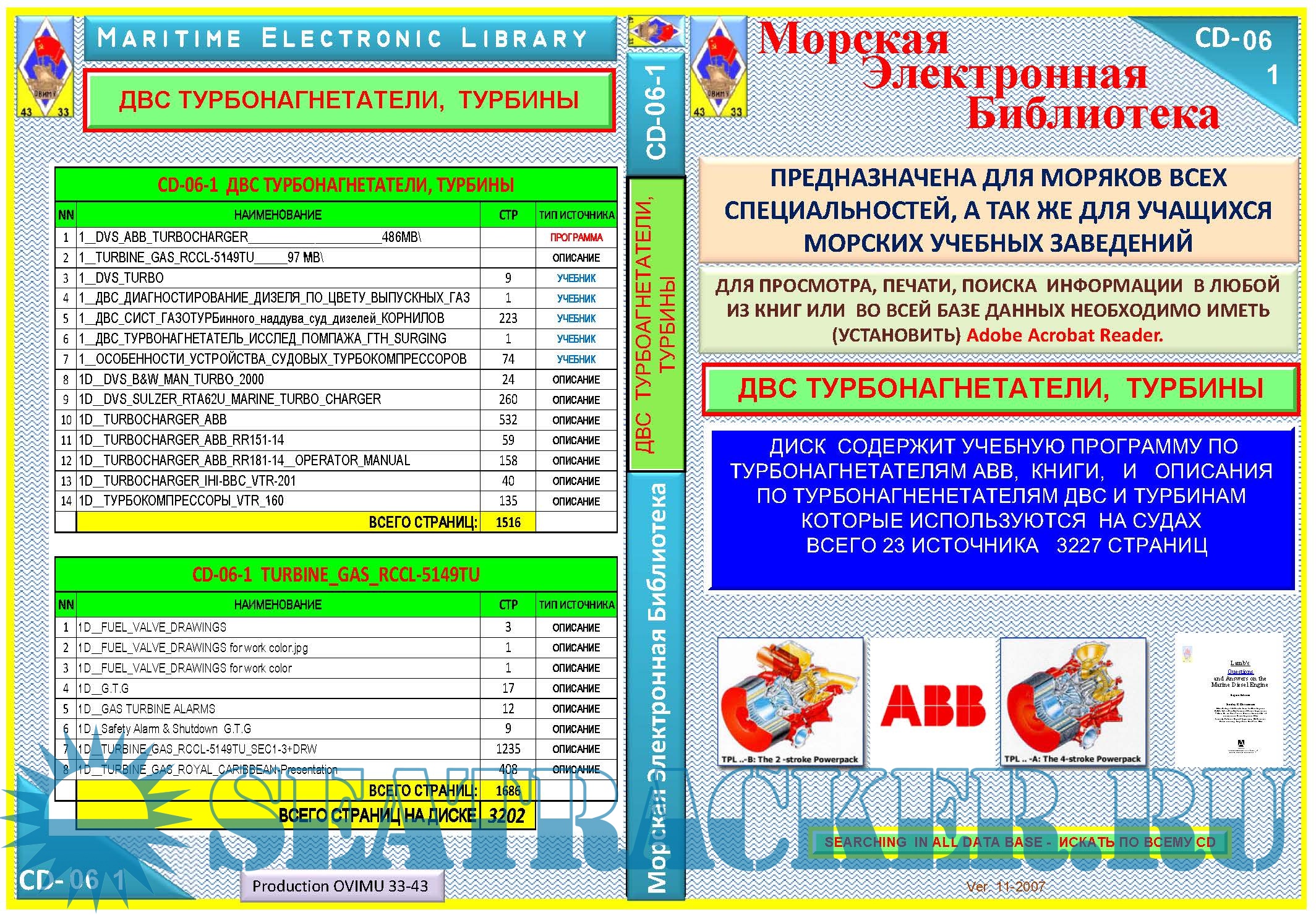 Description: ДИСК СОДЕРЖИТ УЧЕБНУЮ ПРОГРАММУ ПО ТУРБОНАГНЕТАТЕЛЯМ АВВ, КНИГИ, И ОПИСАНИЯ ПО ТУРБОНАГНЕНЕТАТЕЛЯМ ДВС И ТУРБИНАМ КОТОРЫЕ ИСПОЛЬЗУЮТСЯ НА СУДАХ