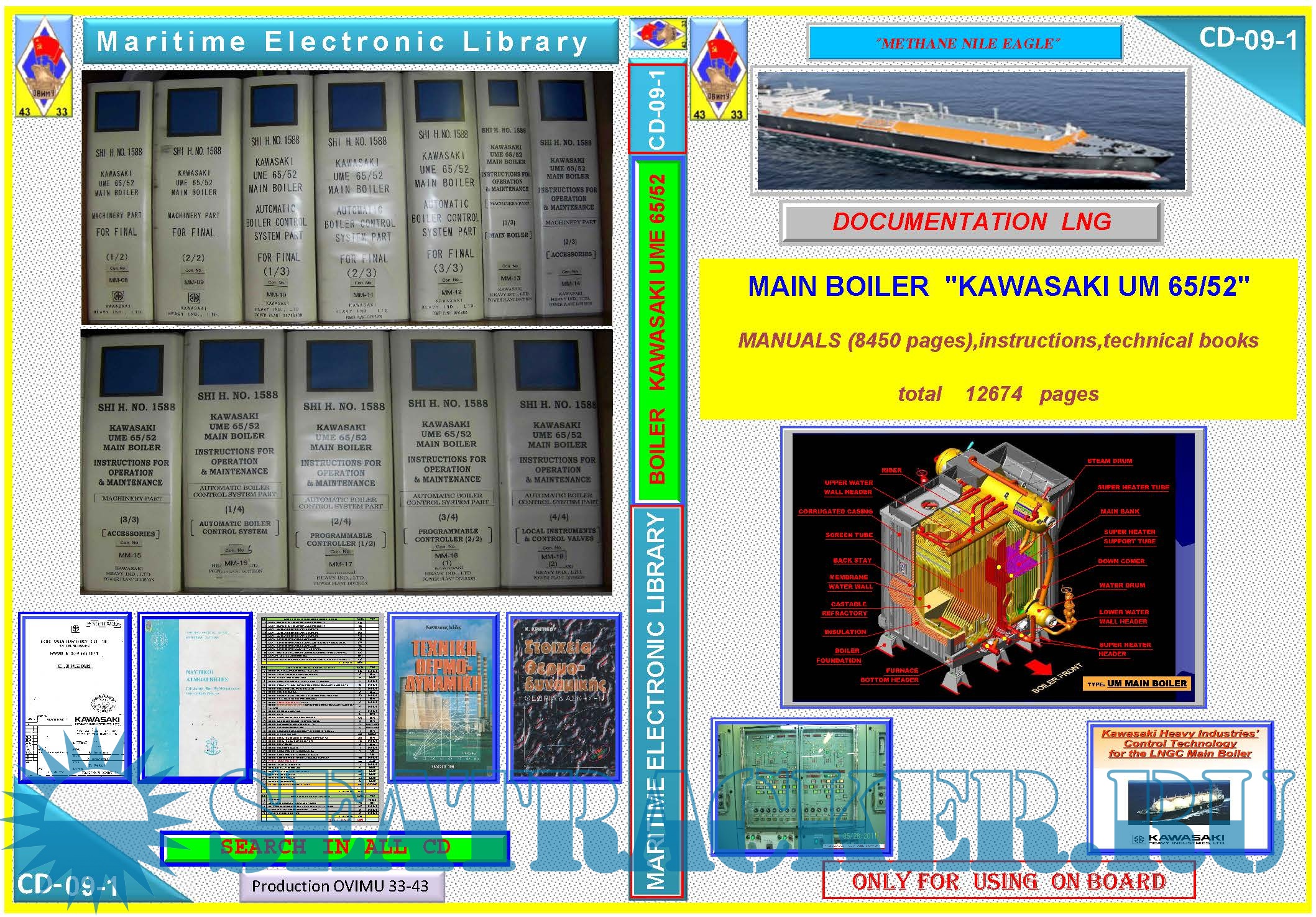 ПОЛНАЯ ТЕХНИЧЕСКАЯ ДОКУМЕНТАЦИЯ ПО СУДОВОМУ ПАРОВОМУ КОТЛУ KAWASAKI UME 65/52 ,УЧЕБНИКИ НА АНГЛ И ГРЕЧЕСКОМ ЯЗЫКАХ