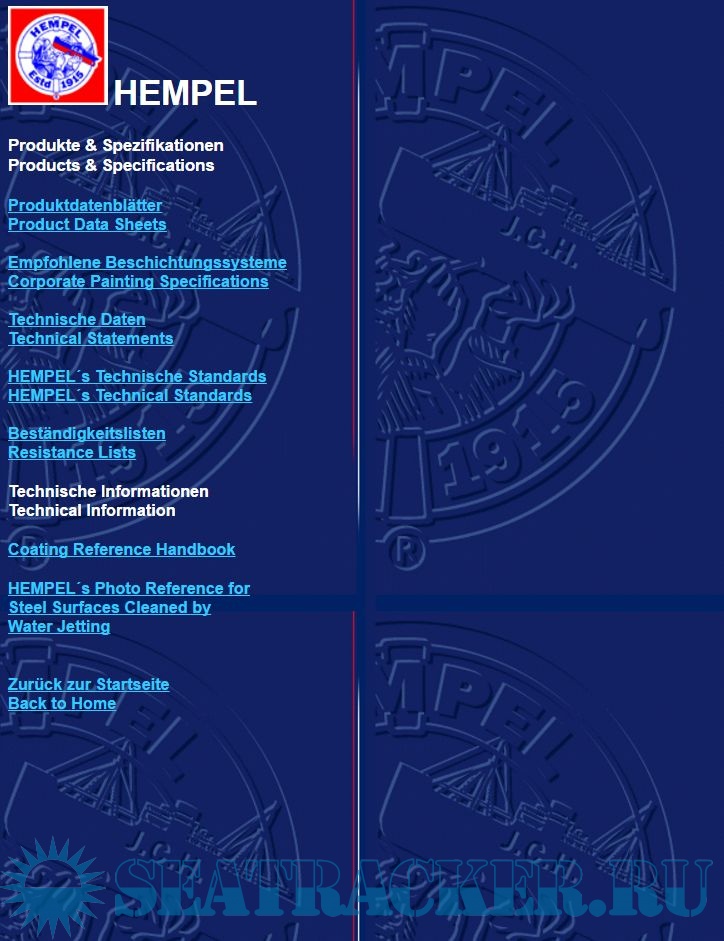 Year: 2006 Language: german / english Author: Hempel Genre: Catalogue Format: HTML + pdf Quality: eBook Description: Hempel company, world-leading coatings supplier for the decorative, protective, marine, container and yacht markets. From wind turbines and bridges to hospitals, ships, power stations and homes, our coatings protect man-made structures from the corrosive forces of nature. Additional info: Start with file INDEX.html. Than you can save necessary info with PDF file or print it out with english or german language.