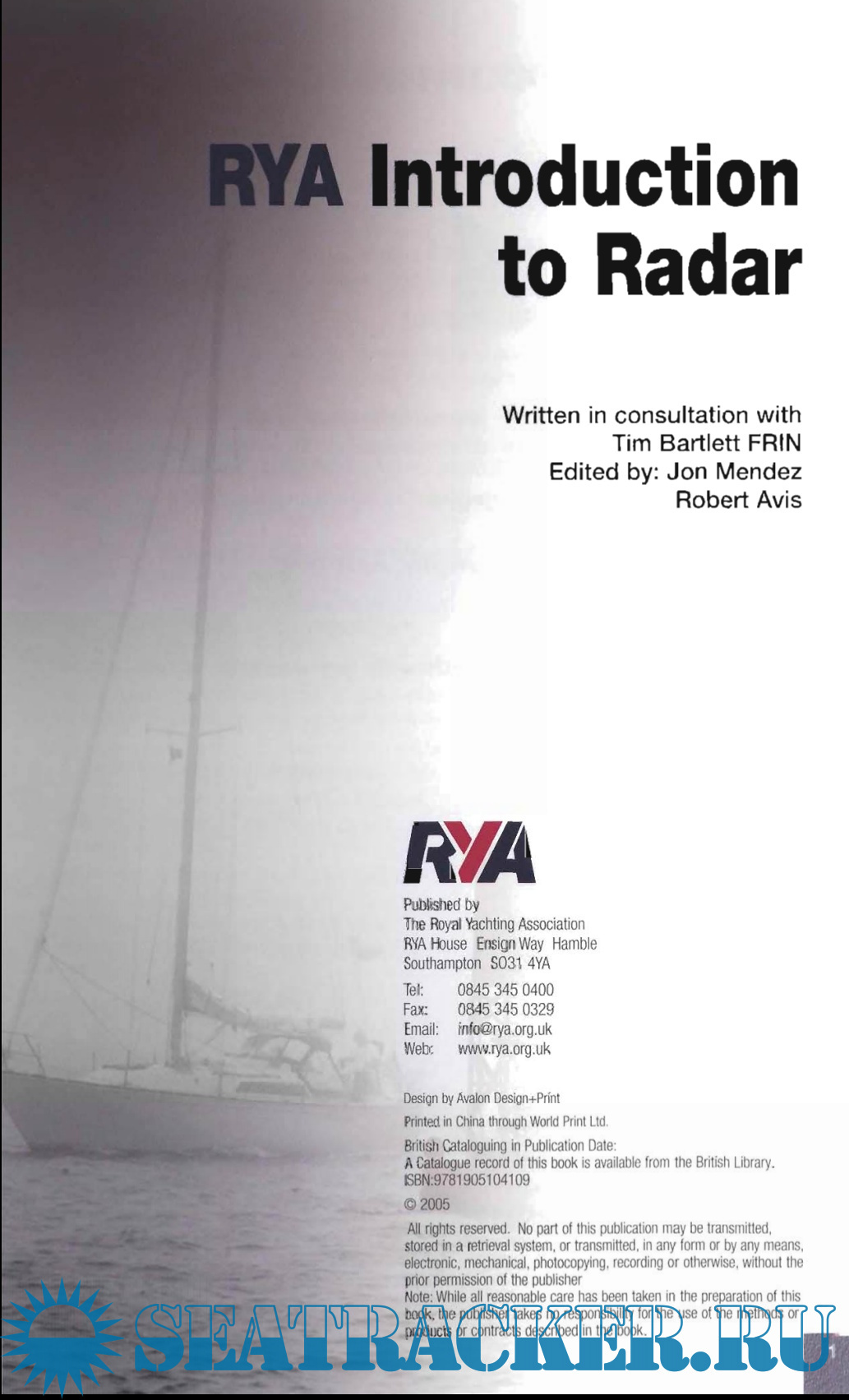 Year: 2005 Language: english Author: Tim Bartlett &jon Mendez & Robert A Genre: Учебное пособие Publisher: RYA ISBN: 9781905104109 Format: PDF Quality: Scanned pages Number of pages: 32 Description: Marine radar is an electronic device which measures the bearing and distance of solid objects, and presents this information in the form of a map-like diagram, showing location of objects such as land, navigation marks, and other vessels. This introduction is a good primer and also a handy reference for the experienced.