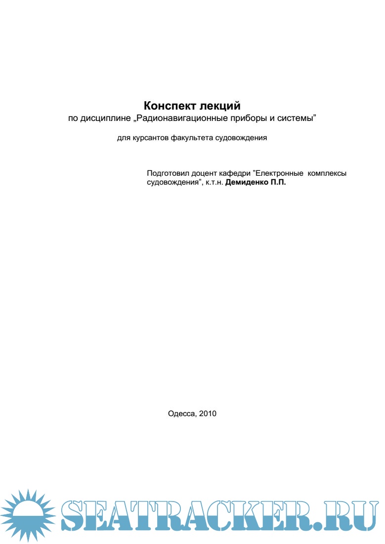 Описание: Конспект лекций по дисциплине „Радионавигационные приборы и системы” для курсантов факультета судовождения. Подготовил доцент кафедры ”Електронные комплексы судовождения” (Одесса), к.т.н. Демиденко П.П.