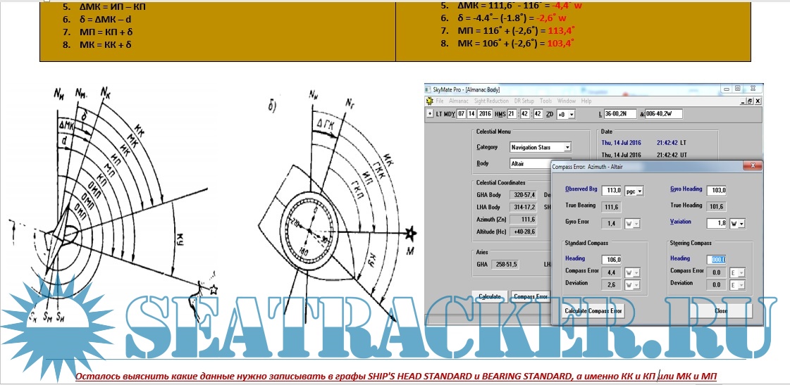 Описание: О том каким образом производится расчет поправки компаса программой sky mate