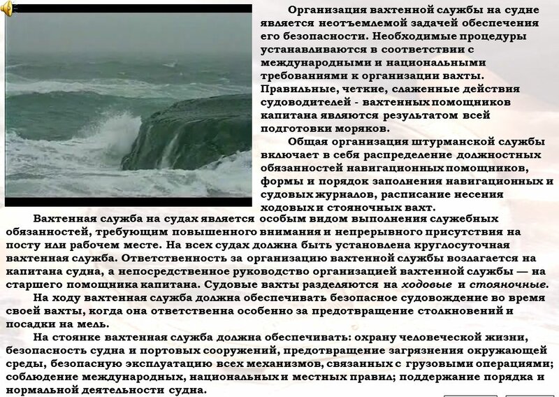 Описание: Интерактивный курс по теме "Организация вахтенной службы", сопровождается аудио комментариями автора. Все правила наглядно поясняются автором.