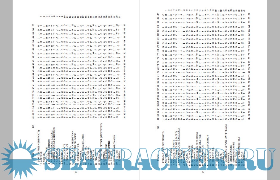 Tank Cleaning Product Cross-Reference Charts, 61-73
