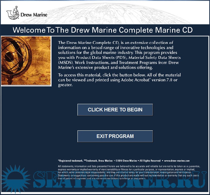 Description: The Drew Marine Complete CD is an comprehensive collection of information on board range of innovative technologies and solutions for the global marine industry. This program provides you with Product Data Sheets (PDS), Material Safety Data Sheets (MSDS), Work Instructions and Treatment Programs from Drew Marine's extensive product and solutions offering.