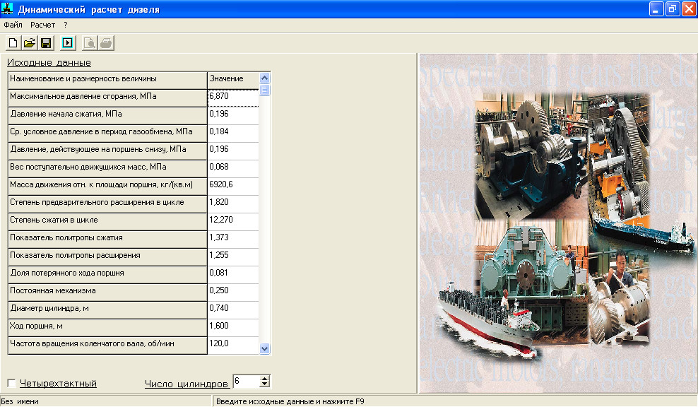 Описание: программа позволяет выполнить расчёт динамики дизеля