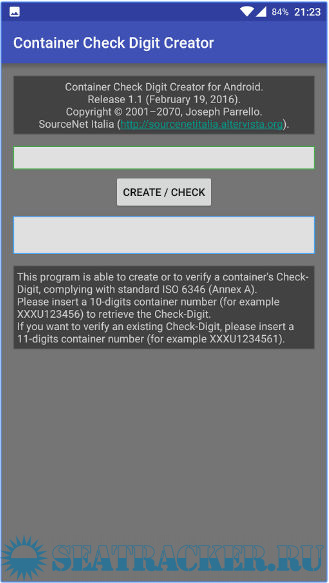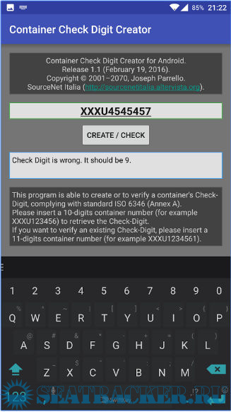 Description: This app is able to create or to verify a container's Check-Digit, complying with standard ISO 6346 (Annex A).
