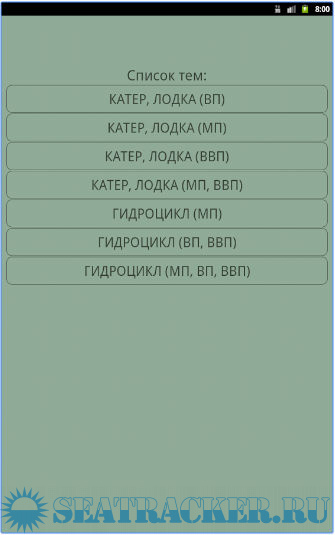 Год выпуска: 2016 Версия: 1.14 Разработчик: Alexey Leshchuk Платформа: Android Системные требования: Android 2.3.3+ Язык интерфейса: русский Описание: Экзаменационные билеты ГИМС на право управления: - катерами с главными двигателями мощностью до 55 кВт и моторными лодками по районам плавания МП, ВП, ВВП - гидроцикл по районам плавания МП, ВП, ВВП Нормативные акты: - Правила Плавания по ВВП РФ - МППСС-72