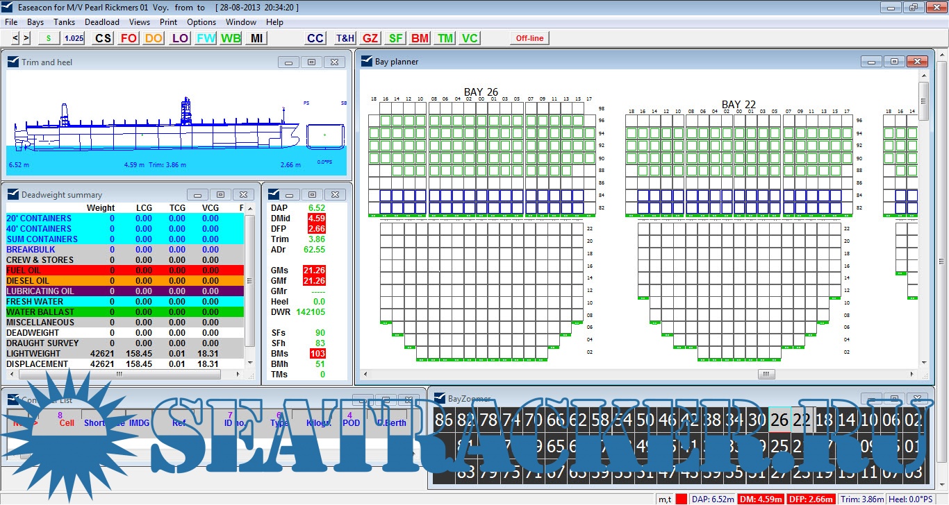 Расчет остойчивости контейнеровоз в Excel + загрузка EDI файла в Excel v.1 - CaptainWhite [2017]