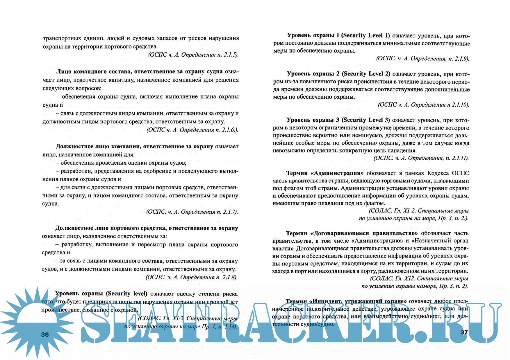 Настоящее учебное пособие подготовлено в соответствии с принятыми Дипломати¬ческой Конференцией (Лондон-IMO, 9-13 декабря 2002), рядом поправок в Международную Конвенцию СОЛАС 74, включающих обязательные требования, знание которых дает право на выдачу офицеру, прошедшему обучение на специальных курсах, диплома (сертификата) для выполнения функций, связанных с охраной судна. Спецификация минимальных стандартов профессиональных знаний, умений и навыков для офицера, ответственного за охрану судна, из¬ложена в Правиле VU5 - Конвенции ПДНМВ 78/95, а также в Конвенции СОЛАС 74 (Правиле XI -2/3) содержащей Международный кодекс по охране судов и портовых средств (МК ОСПС), «International Code for the security of ships and the port facilities» - (ISPS CODE).