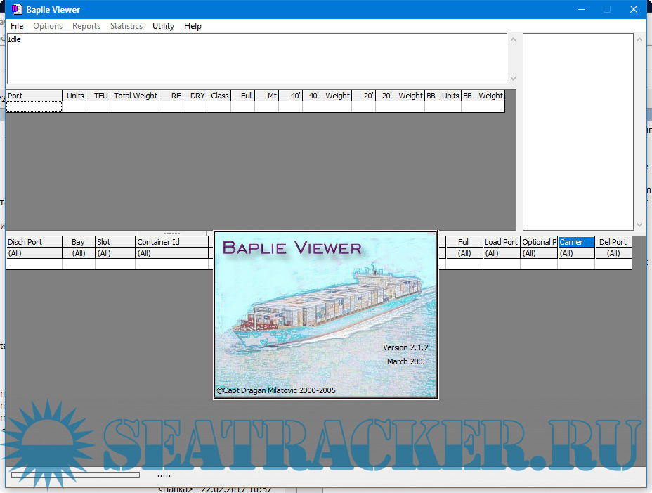 Year: 2005 Version: 2.1.2 Developer: Capt. Dragan Milatovic Platform: Windows 64-bit OS compatibility: yes System Requirements: Windows XP, 7, 8, 10 x32 or x64 Localization: english Crack: N/A Description: Baplie Viewer doesn't expect any user input for normal work. User just need to show which file is to be decoded. Baplie Viewer doesn't edit and/or change original BAPLIE file. Baplie viewer shows content of file and doesn't assume vessel shape and or size or type of cargo carried in containers. What Baplie viewer program does? Baplie viewer (BV), decodes BAPLIE file. Baplie is textual file that is transmitted between container terminals and/or from terminal to a vessel. BV decodes and displays content of BAPLIE file. BV was prepared for BAPLIE version 1.5, however it is able to decode version 1.4 and 2.0. Program is updated to read BAPLIE version 3.0 as per manual dated 10/2000. In time of programming no container terminal was using version 3.0.