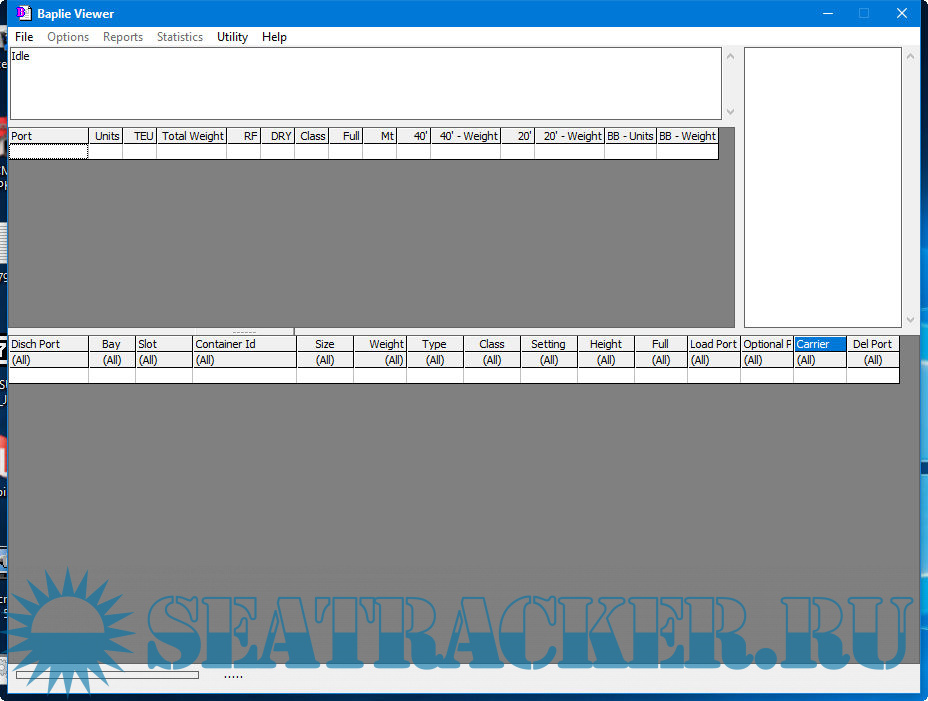Baplie viewer (BV), decodes BAPLIE file. Baplie is textual file that is transmitted between container terminals and/or from terminal to a vessel.