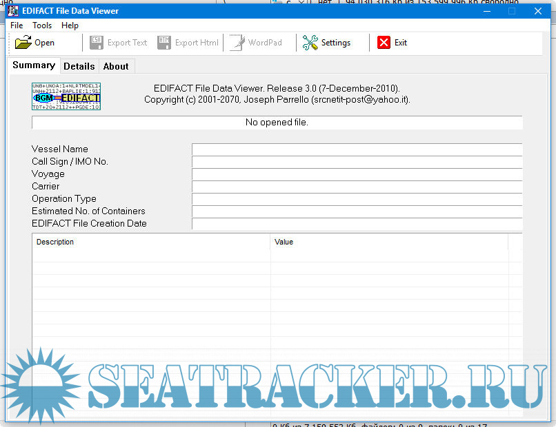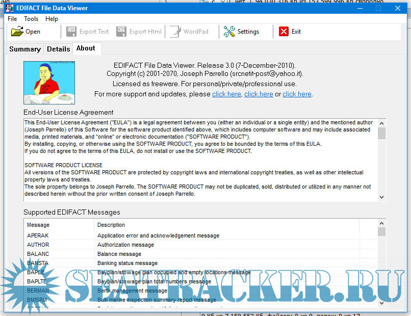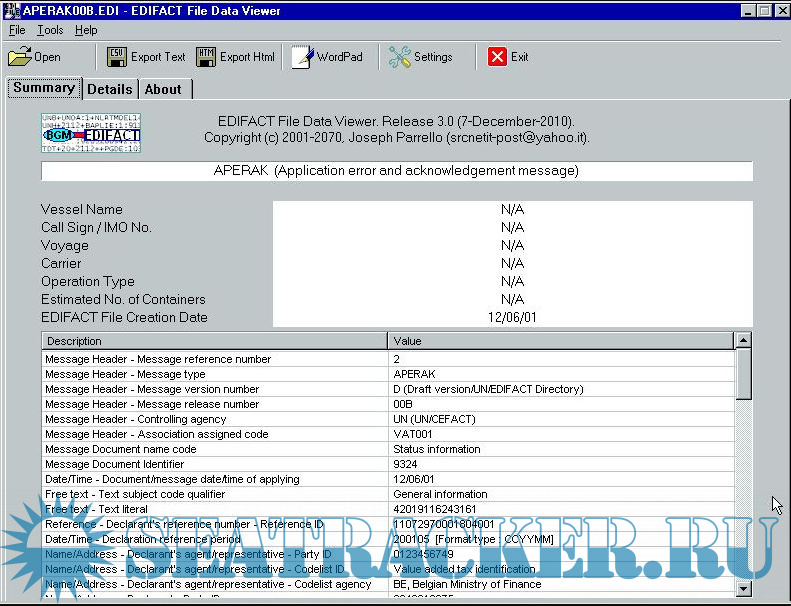 This program is released as FREEWARE for personal/private/professional use. It is not suggested to use this program in Enterprise environments (for Enterprise environments it is better to refer to Enterprise software suitable for all kinds of EDIFACT files).