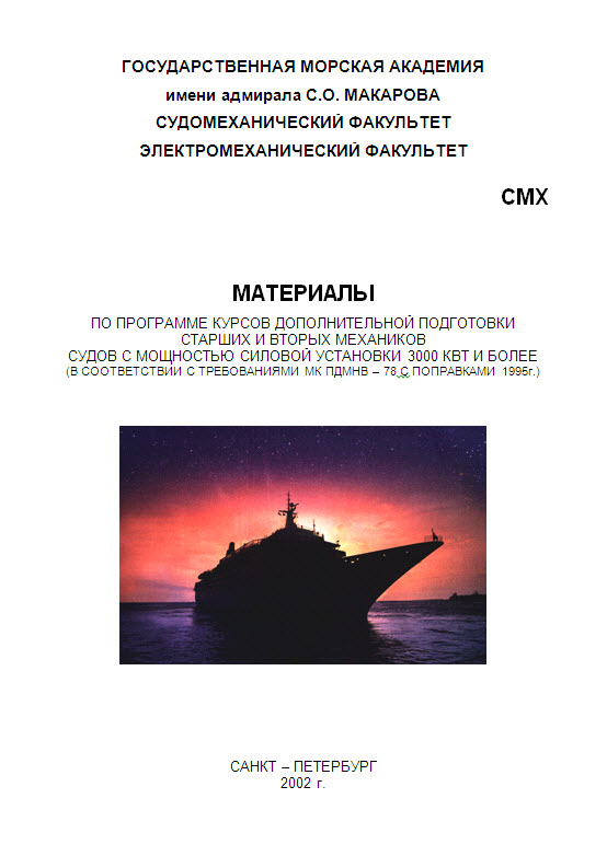 Описание: Материалы по программе курсов дополнительной подготовки старших и вторых механиков судов с мощностью силовой установки 3000 КВТ и более (В соответствии с требованиями МК ПДМНВ – 78 с поправками 1995г.) / Издание четвертое. / Стр. 246, ил. 167, табл. 61.