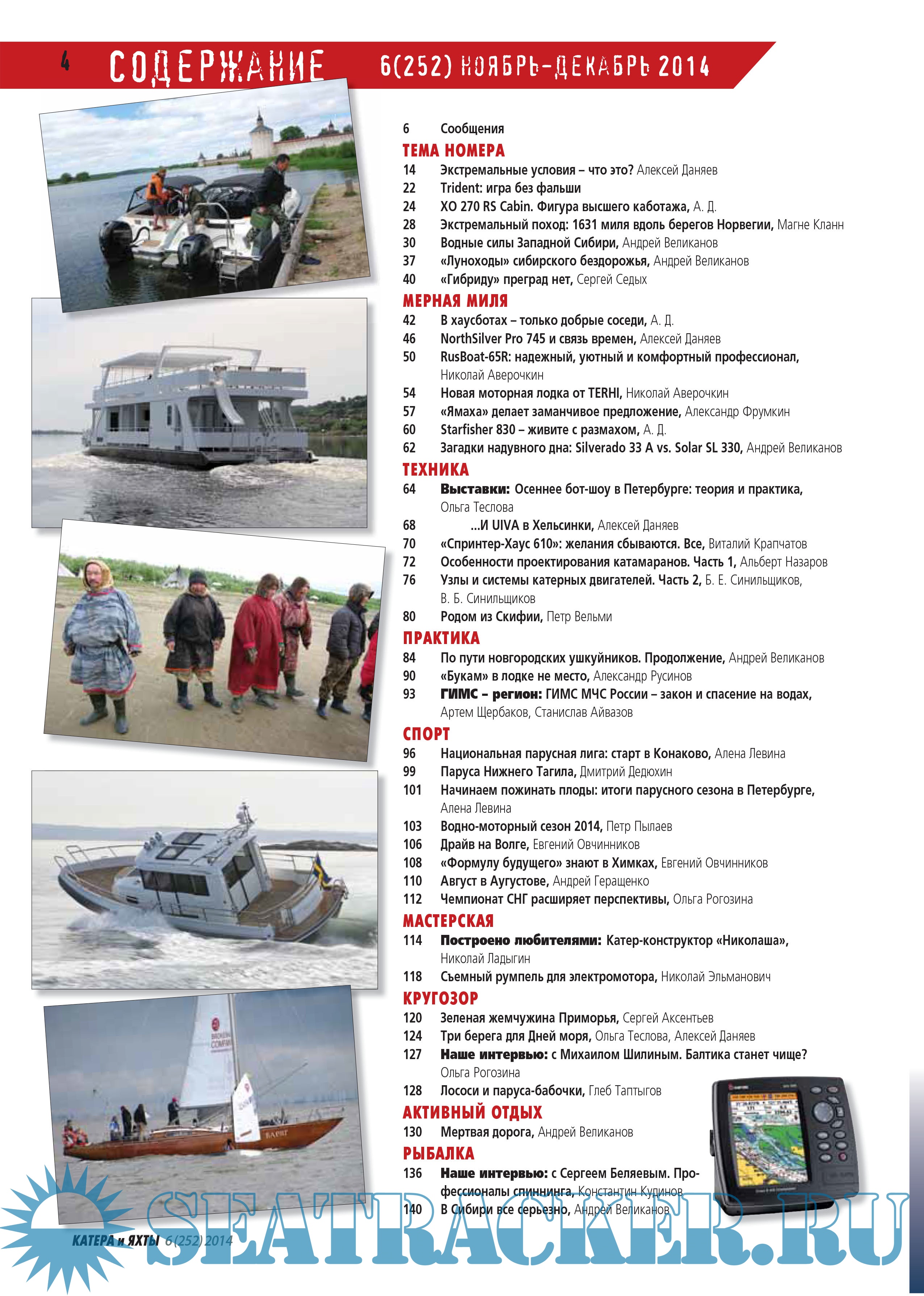 Журнал «Катера и Яхты» расчитан на широкий круг любознательных читателей. Среди них спортсмены, конструкторы, судостроители, составляющие давний круг наших постоянных авторов, которые на страницах журнала раскрывают свои секреты, делятся опытом, публикуют свои проекты. И еще более широкий круг - это любители, чьи интересы географически связаны с водными пространствами, кого всегда привлекала романтика путешествий, кто мечтает о покорении морей и океанов, спортивных рекордах, интересуется историей и традициями мореплаванью в России, морскими приключениями, спортивными соревнованиями у нас и за рубежом.
