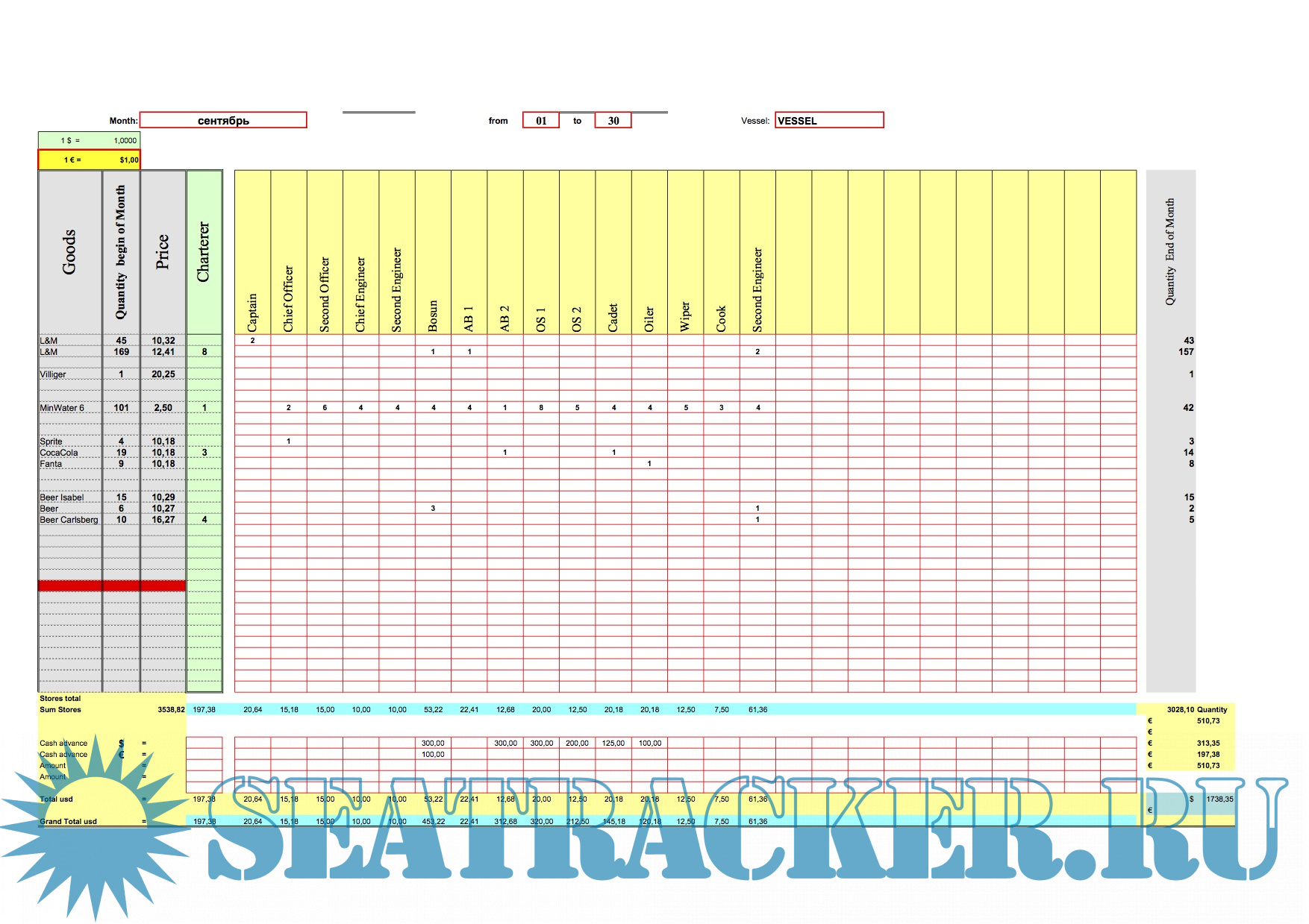 Description: Программа для расчета Bonded Stores. Месячные отчеты в Marlow Navigation и судовладельцу