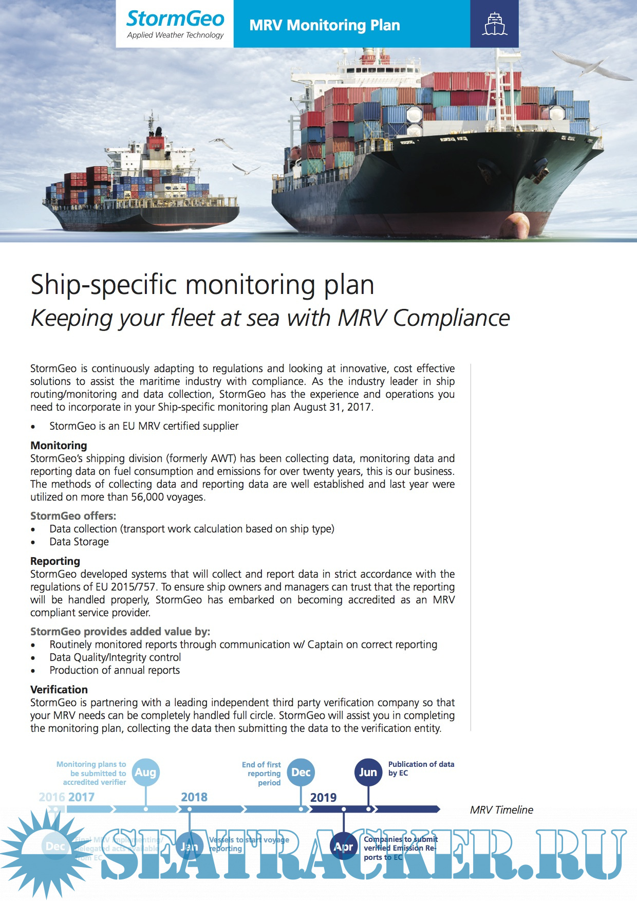 Additional info: The MRV regulation of the European Union (EU) requires ship owners and managers to prepare a monitoring plan for each of their vessels that call ports within the EU. Furthermore, the prepared plans have to be submitted to a verifier by the end of August 2017.